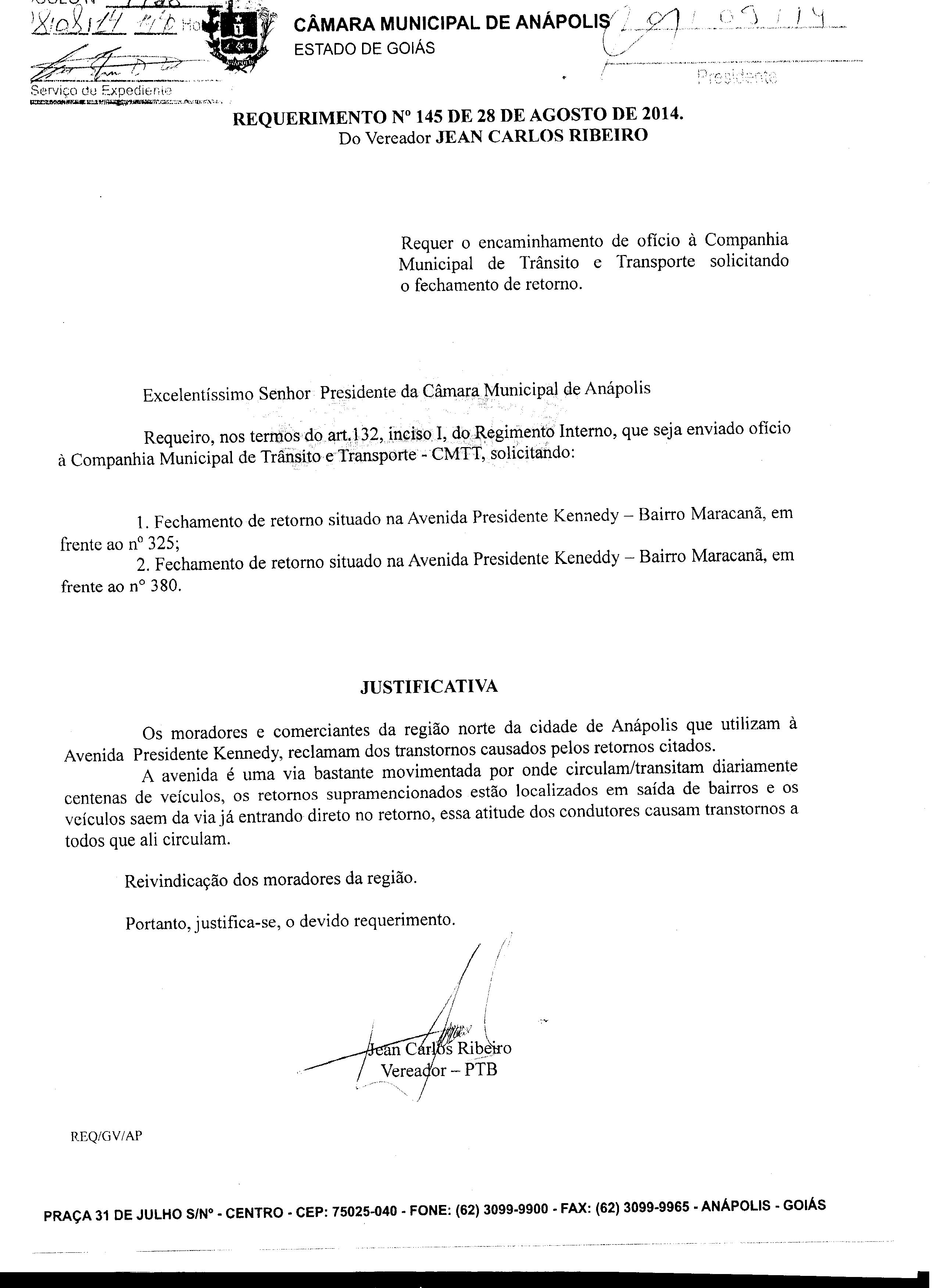 QUE SEJA ENVIADO OFÍCIO À COMPANHIA MUNICIPAL DE TRÂNSITO E TRANSPORTE - CMTT, SOLICITANDO: 1. FECHAMENTO DE RETORNO SITUADO NA AVENIDA PRESIDENTE KENNEDY - BAIRRO MARACANÃ, EM FRENTE AO Nº 325. 2. FECHAMENTO DE RETORNO SITUADO NA AVENIDA PRESIDENTE KENNEDY - BAIRRO MARACANÃ, EM FRENTE AO Nº 380.