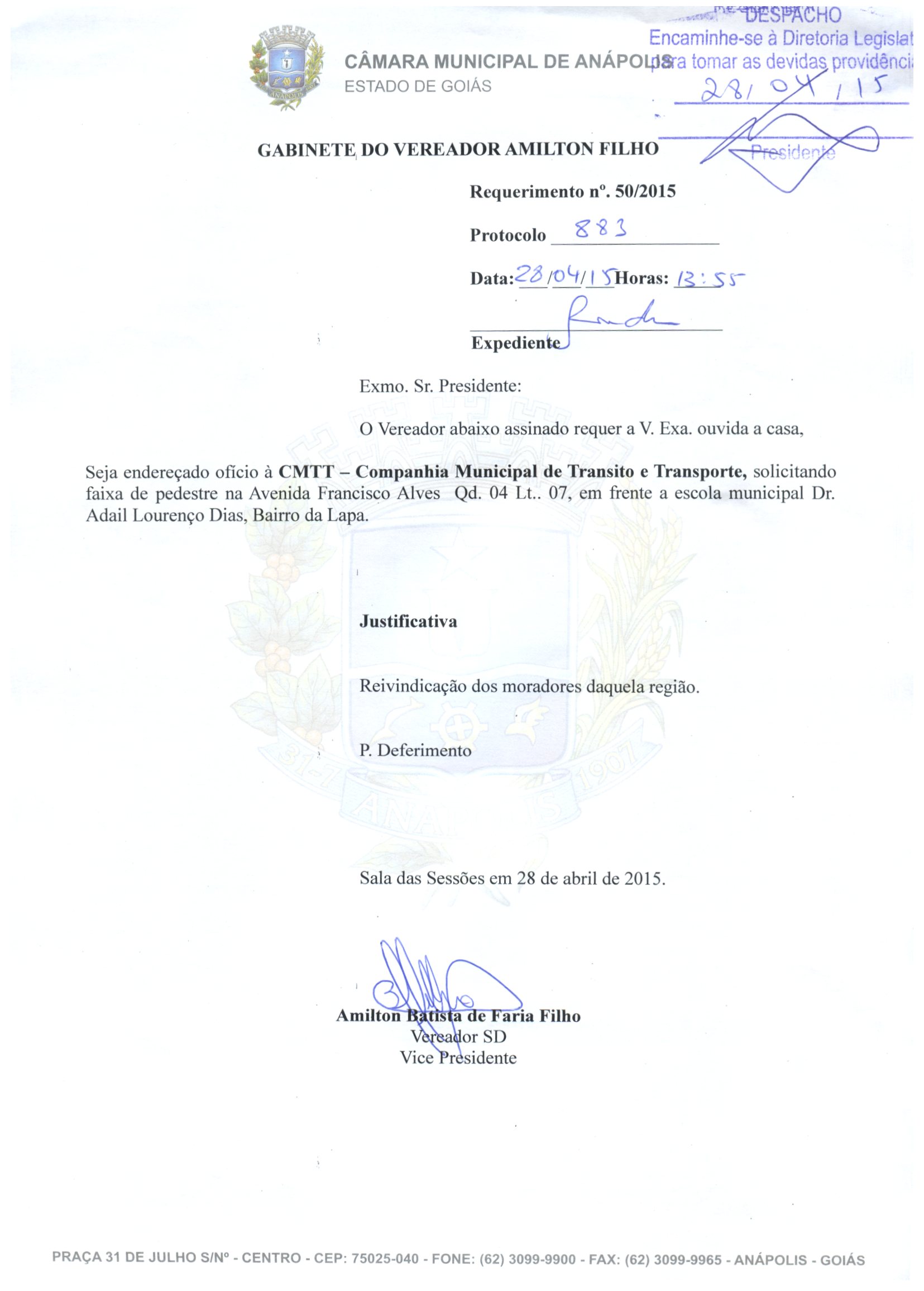 Requerimento nº 883 de 2015