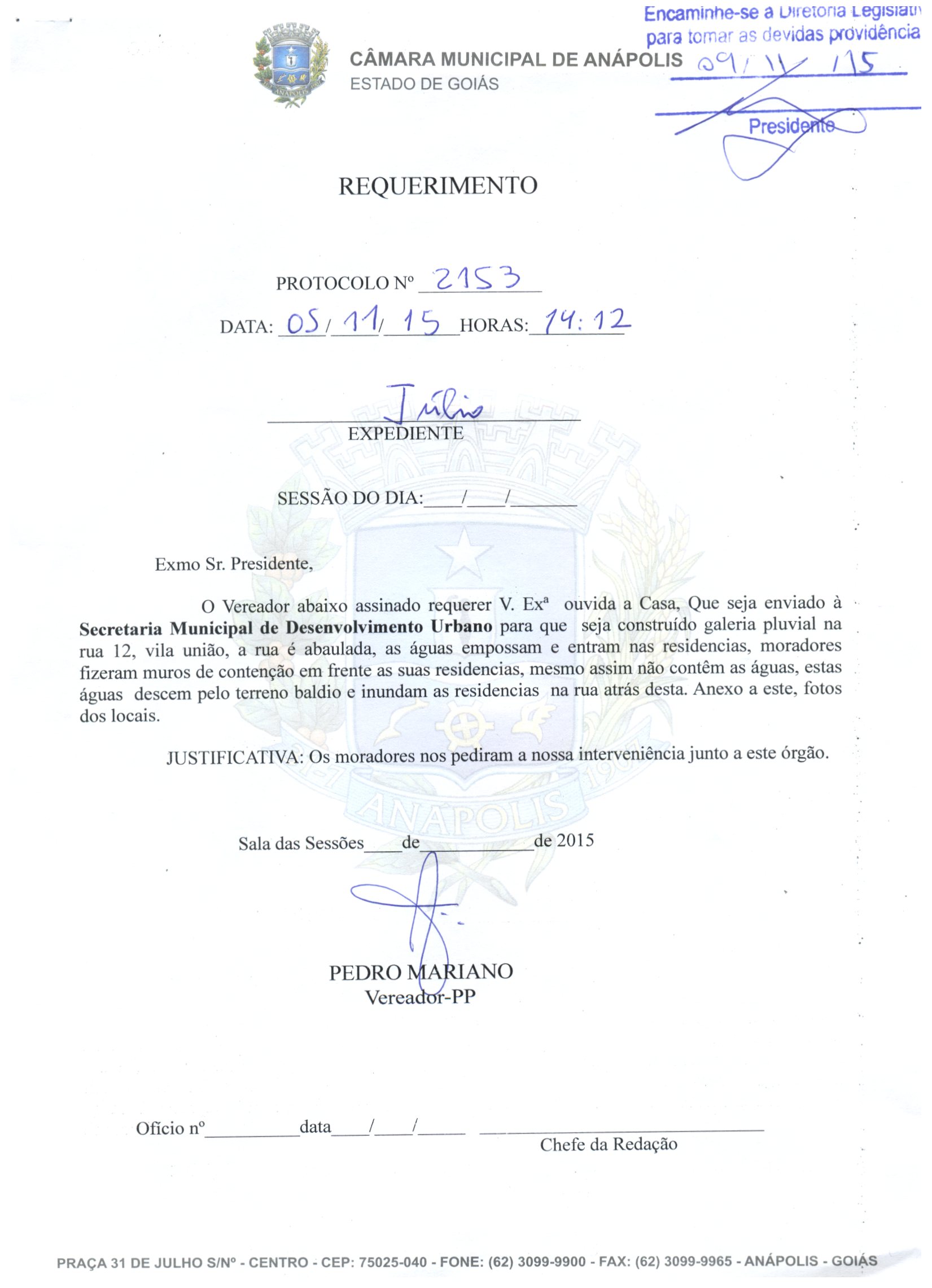 Requerimento nº 2153 de 2015