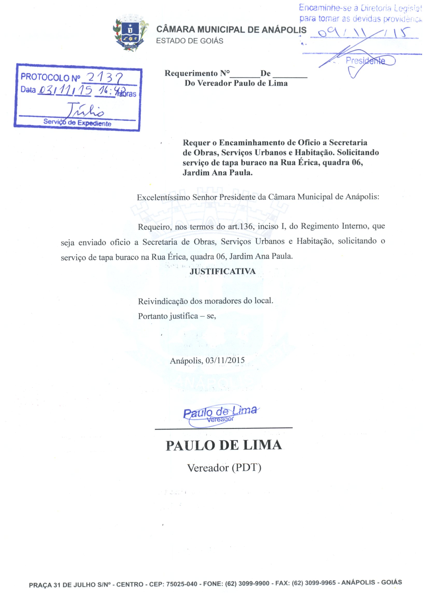 Requerimento nº 2137 de 2015