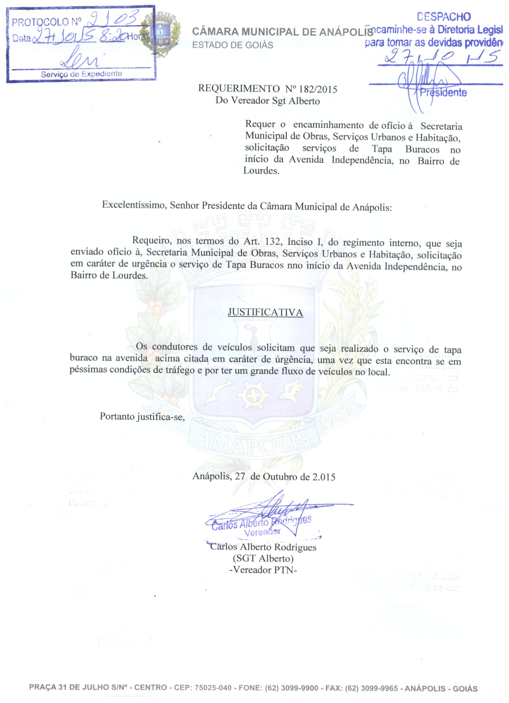 Requerimento nº 2103 de 2015