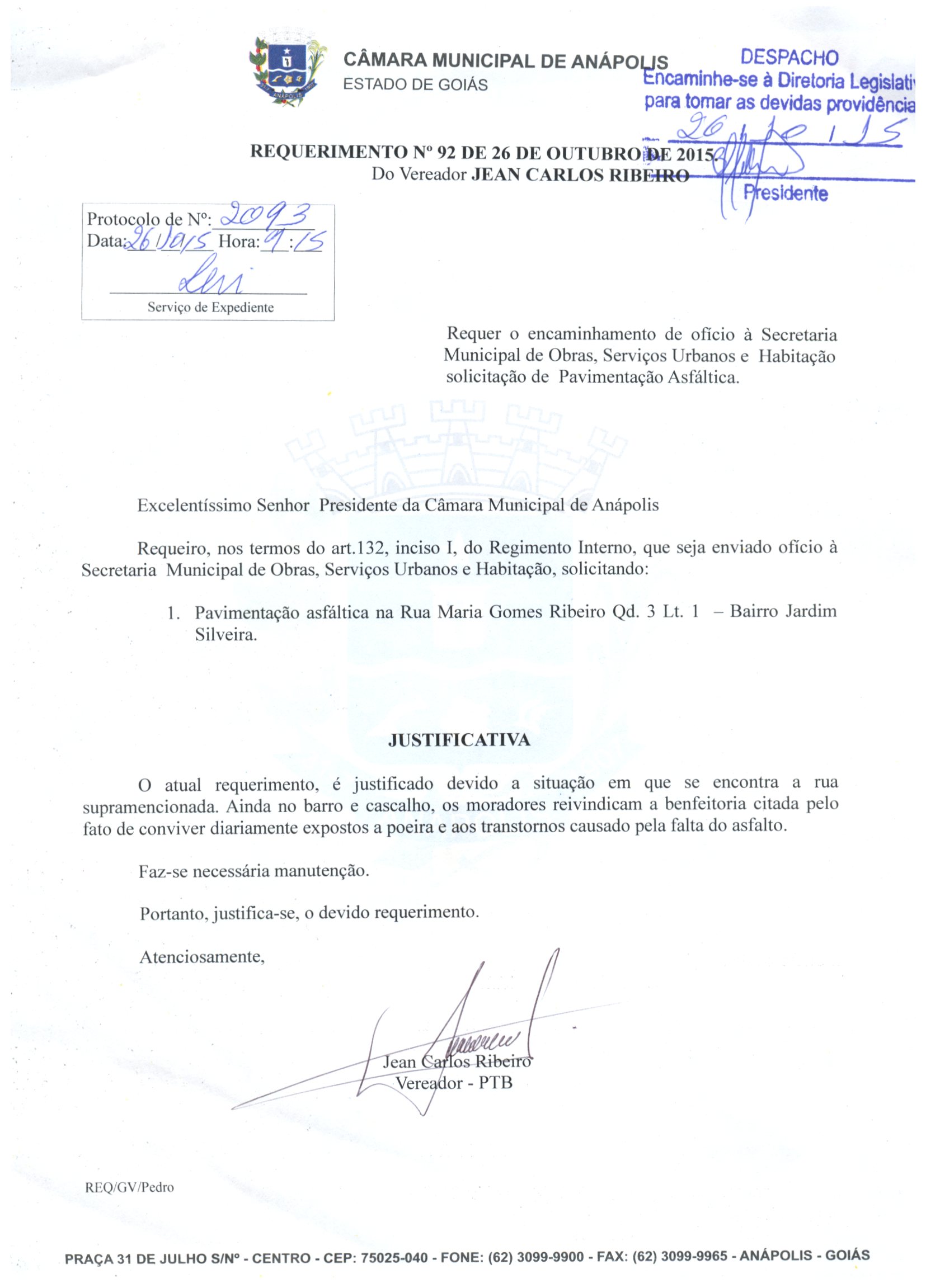 Requerimento nº 2093 de 2015