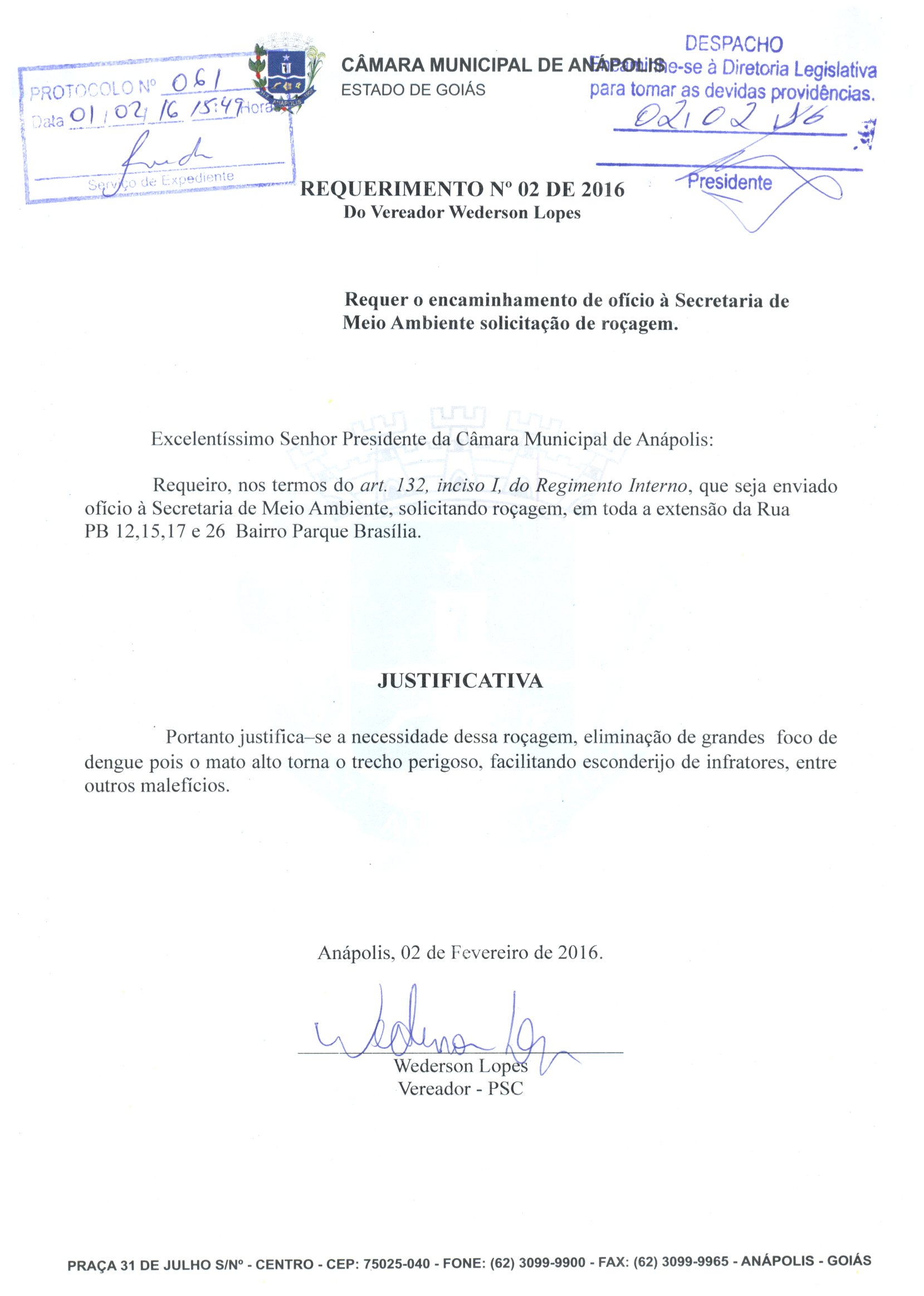 À SECRETARIA DO MEIO AMBIENTE SOLICITANDO ROÇAGEM EM TODA EXTENSÃO DA RUA PB 12, 15, 17 E 26.