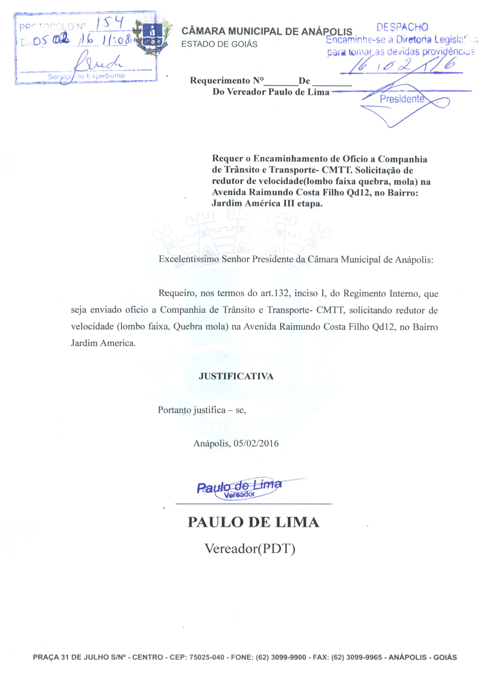 À CMTT, SOLICITAÇÃO DE REDUTOR DE VELOCIDADE ( LOMBO, FAIXA, QUEBRA MOLA) NA AV. RAIMUNDO COSTA FILHO QD 12.