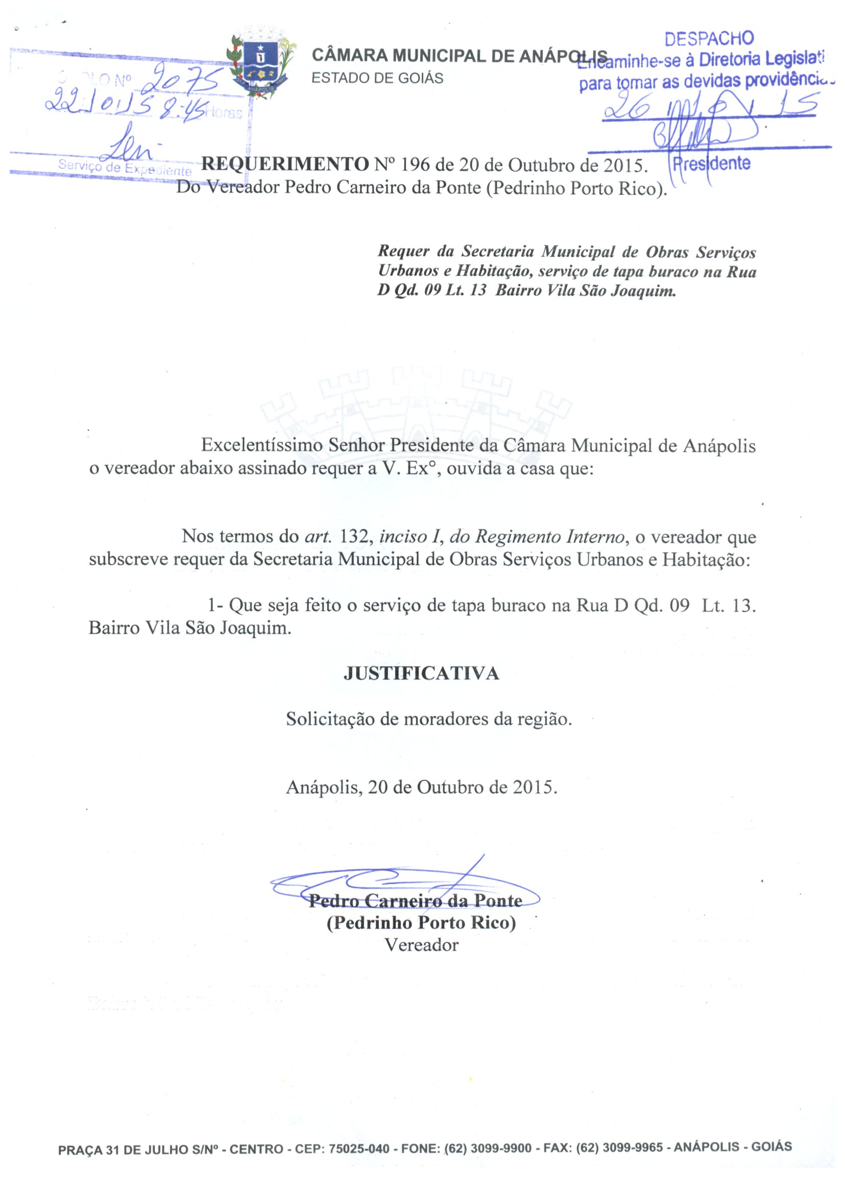 Requerimento nº 2075 de 2015
