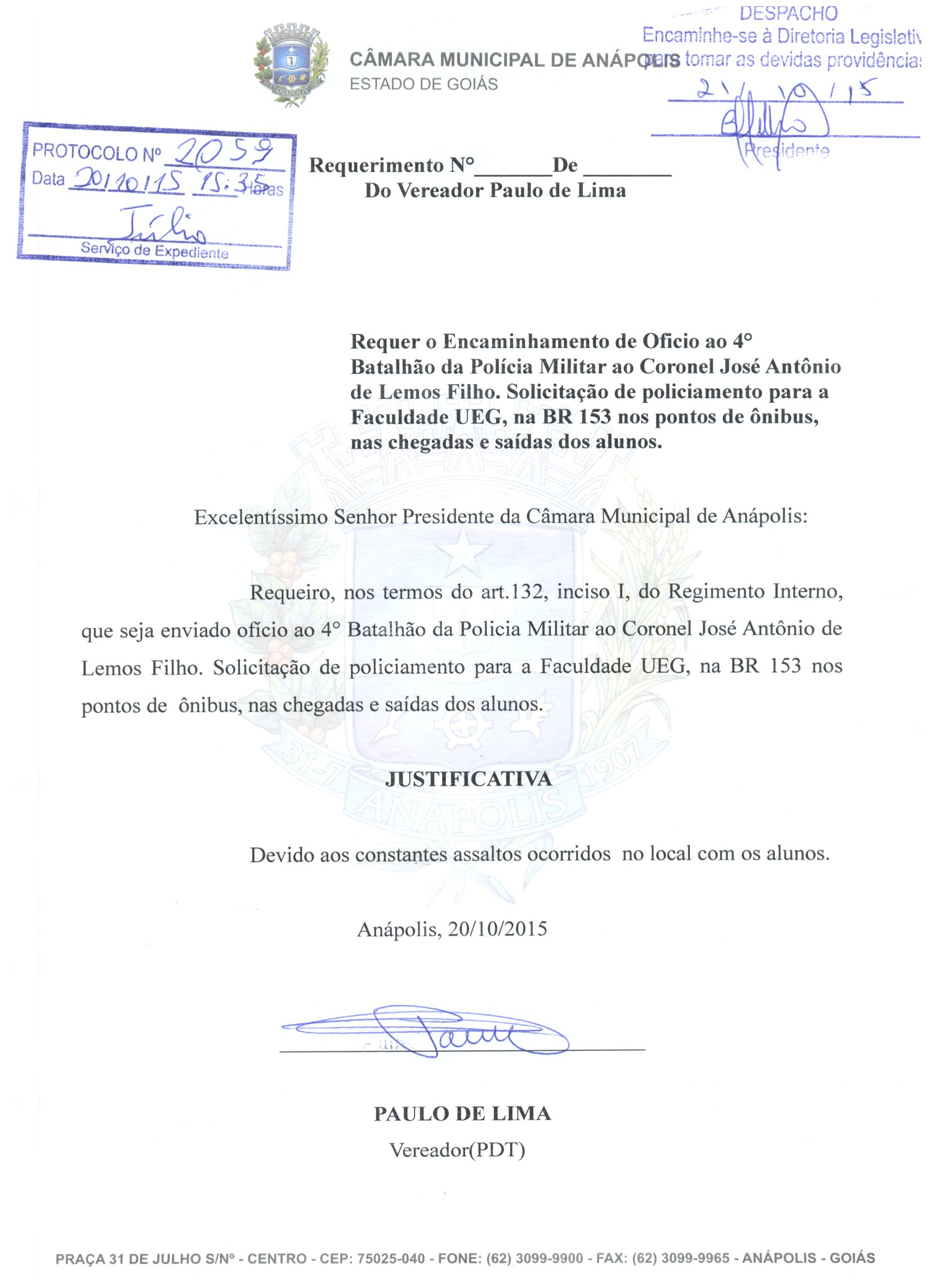 Requerimento nº 2059 de 2015