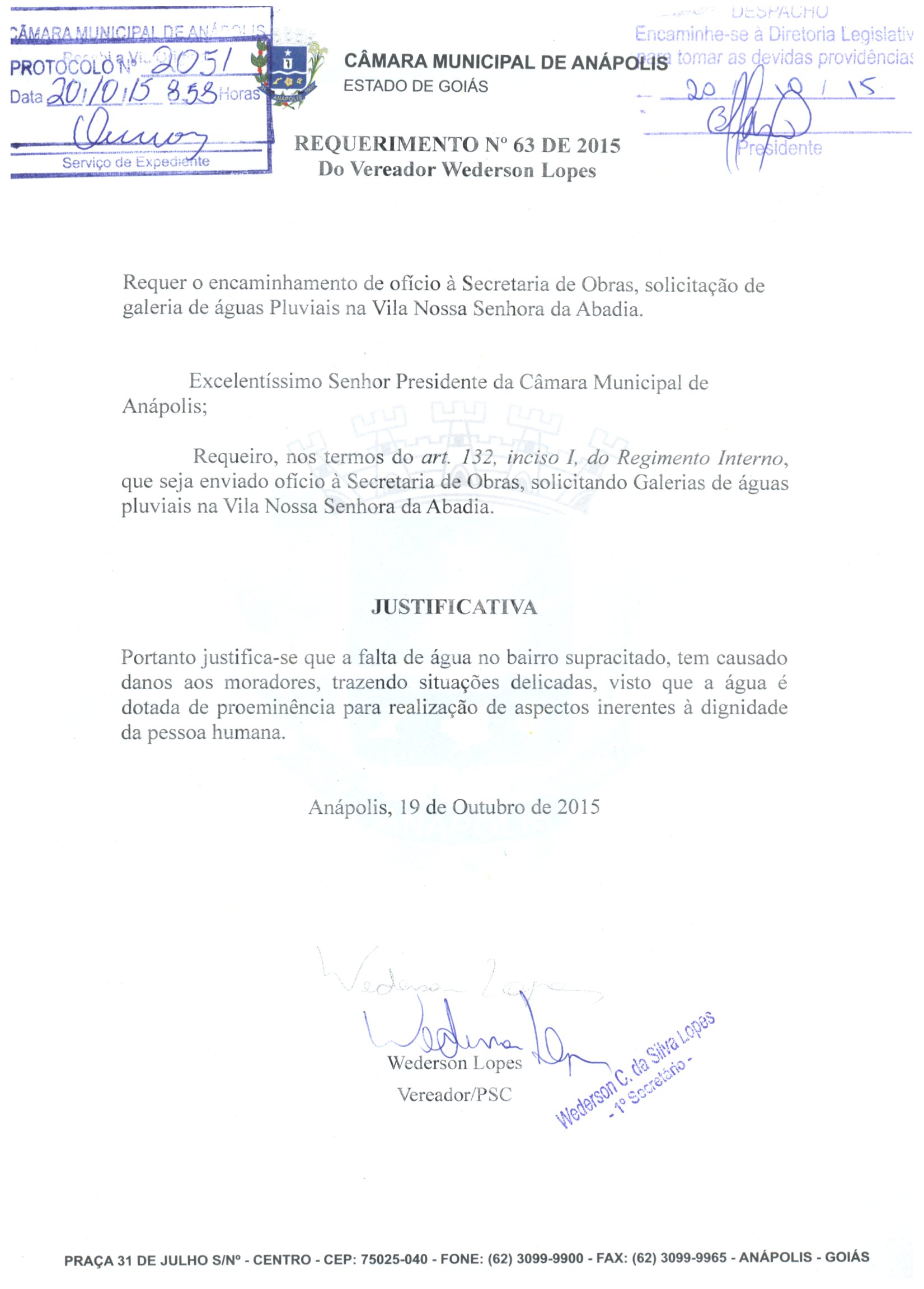QUE SEJA ENVIADO OFÍCIO À SECRETARIA MUNICIPAL DE OBRAS, SOLICITANDO GALERIAS DE ÁGUAS PLUVIAIS NA VILA NOSSA SENHORA DA ABADIA.