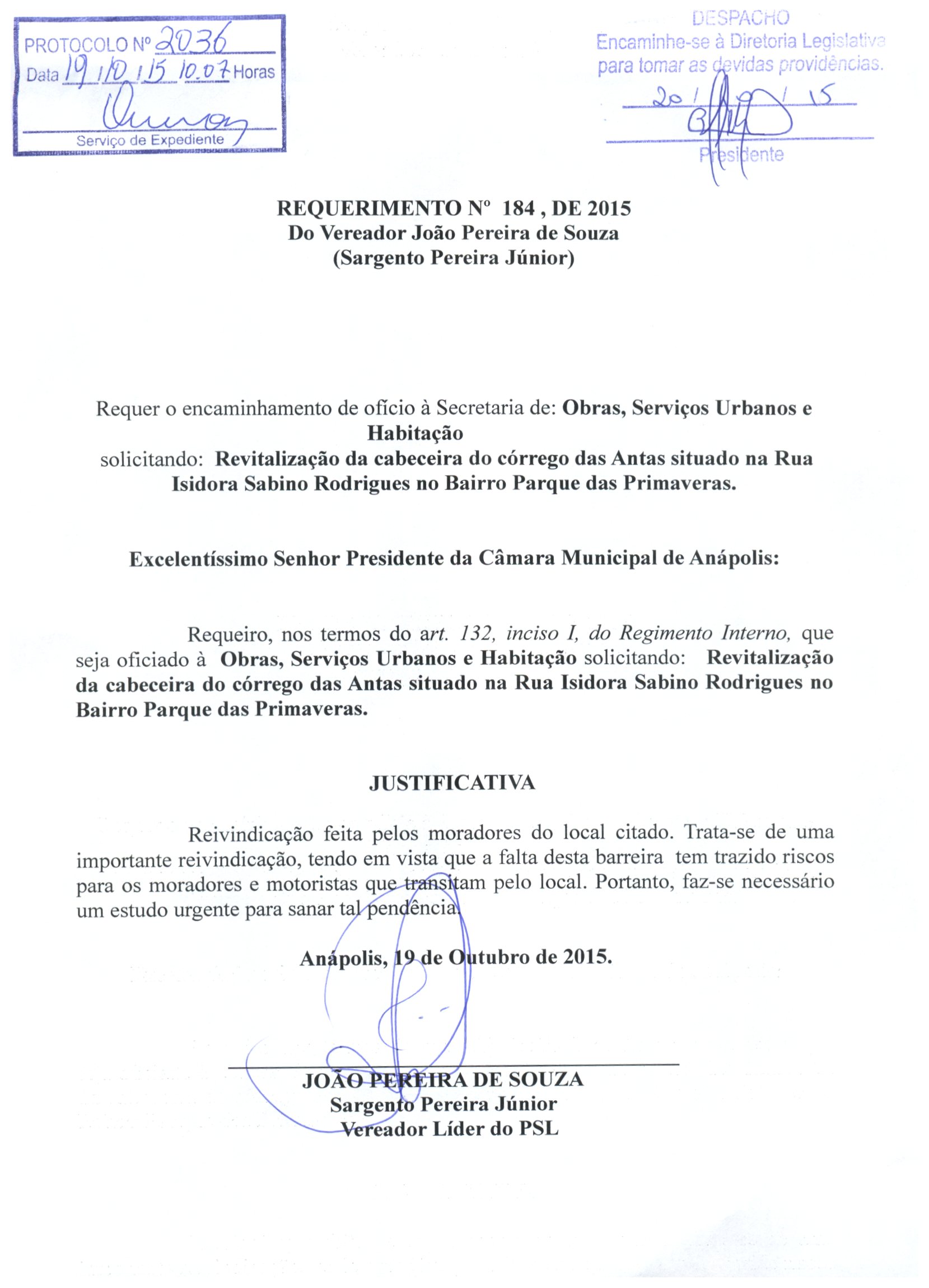 Requerimento nº 2036 de 2015