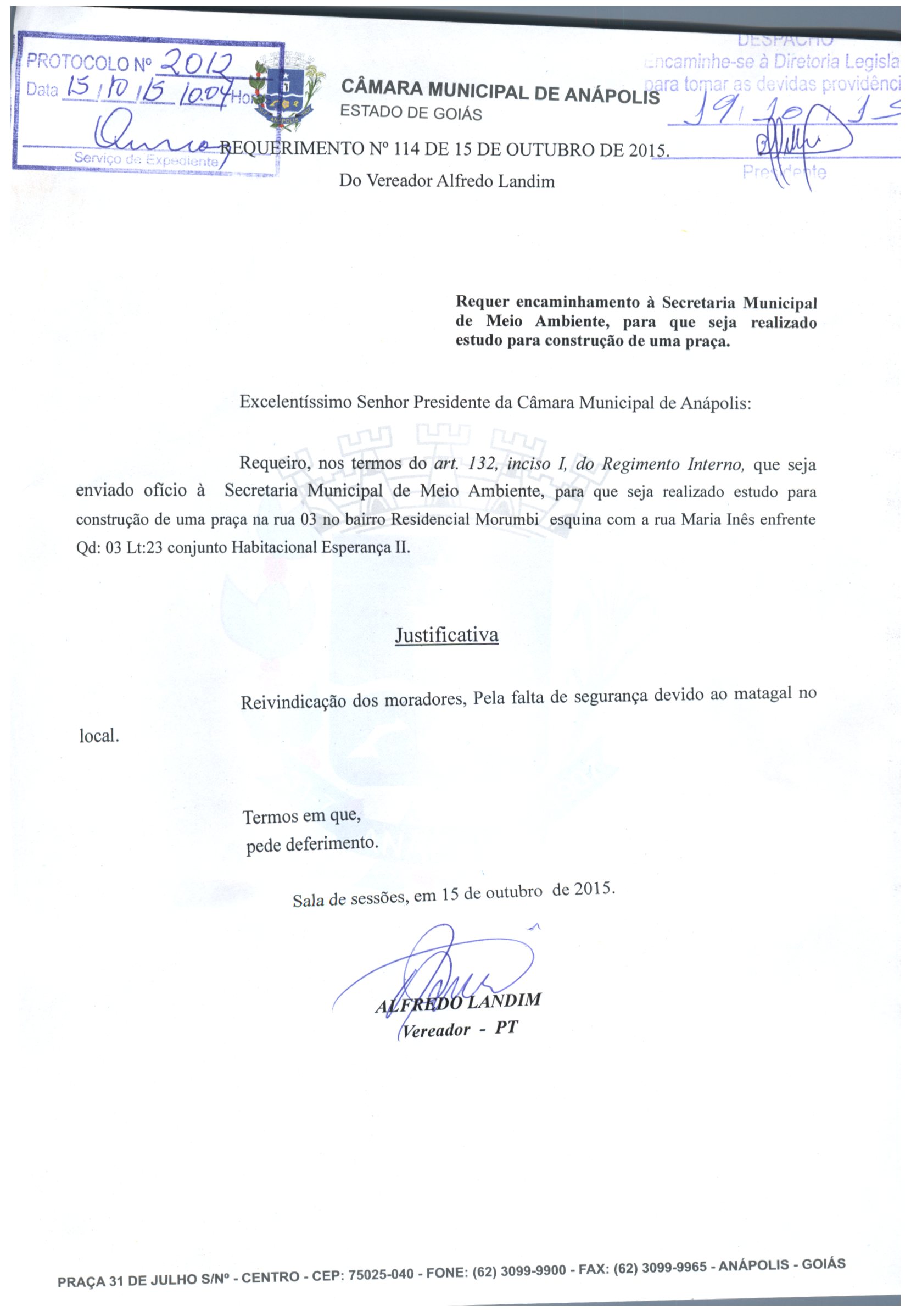 Requerimento nº 2012 de 2015