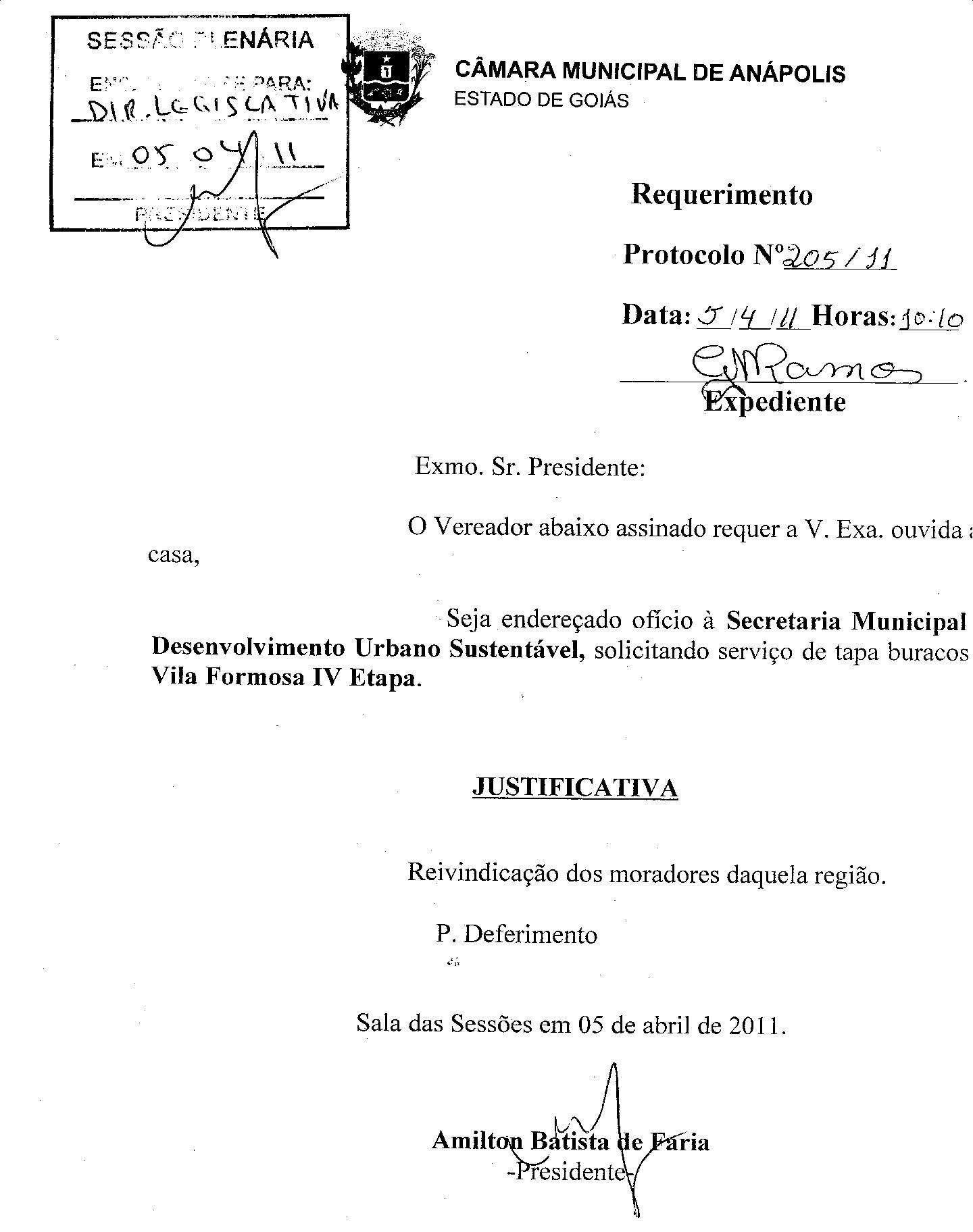 O VEREADOR ABAIXO ASSINANDO REQUER A V.EXA. OUVIDA A CASA, SEJA ENDEREÇADO OFÍCIO À SECRETARIA MUNICIPAL DE DESENVOLVIMENTO URBANO SUSTENTÁVEL , SOLICITANDO SERVIÇO DE TAPA BURACOS NA VILA FORMOSA IV ETAPA.