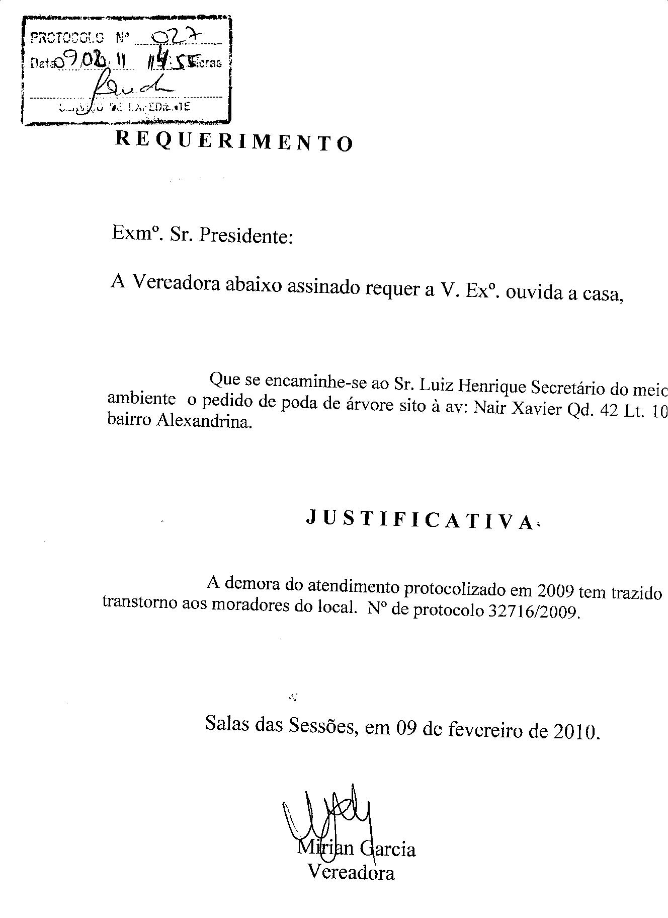 Ementa: A VEREADORA ABAIXO ASSINADO REQUER A V.EXº. OUVIDA A CASA, QUE SE ENCAMINHE-SE AO SR. LUIZ HENRIQUE SECRETÁRIO DO MEIO AMBIENTE O PEDIDO DE PODA DE ÁRVORE SITO À AV: NAIR XAVIER QD. 42 LT.10 BAIRRO ALEXANDRINA.