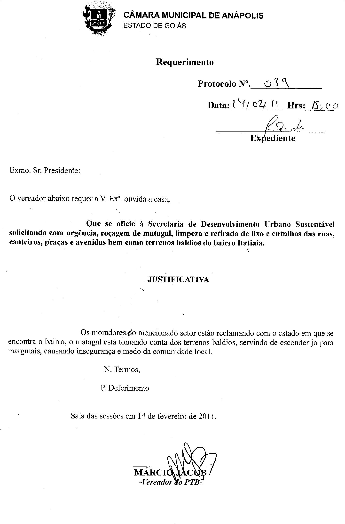 Ementa: O VEREADOR ABAIXO REQUER A V. EXª. OUVIDA A CASA, QUE SE OFÍCIE À SECRETARIA DE DESENVOLVIMENTO URBANO SUSTENTÁVEL SOLICITANDO COM URGÊNCIA, ROÇAGEM DE MATAGAL, LIMPEZA E RETIRADA DE LIXO E ENTULHOS DAS RUAS, CANTEIROS, PRAÇAS E AVENIDAS BEM COMO TERRENOS BALDIOS DO BAIRRO ITATIAIA.
