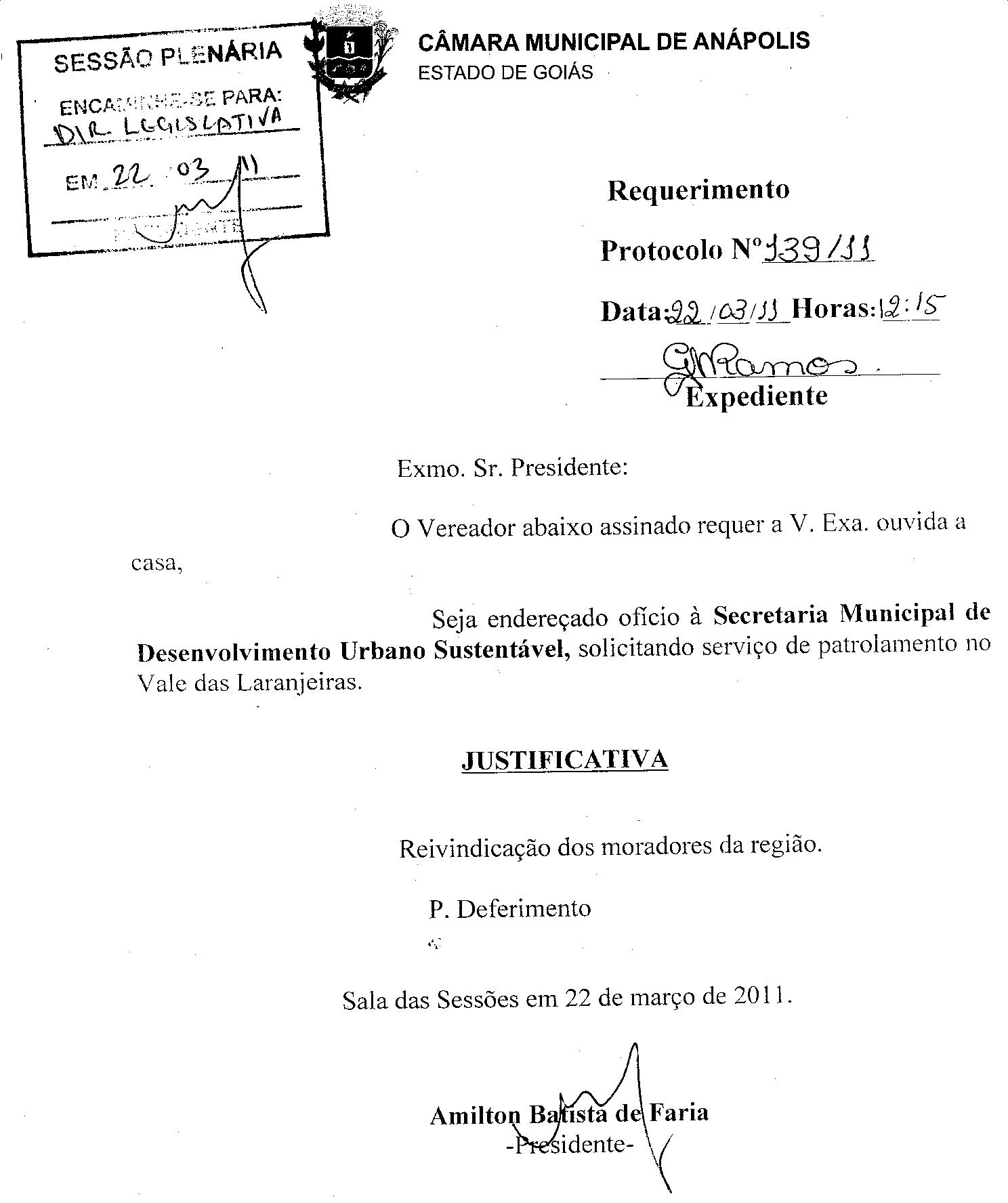 REQ 139/2011 - Requerimento