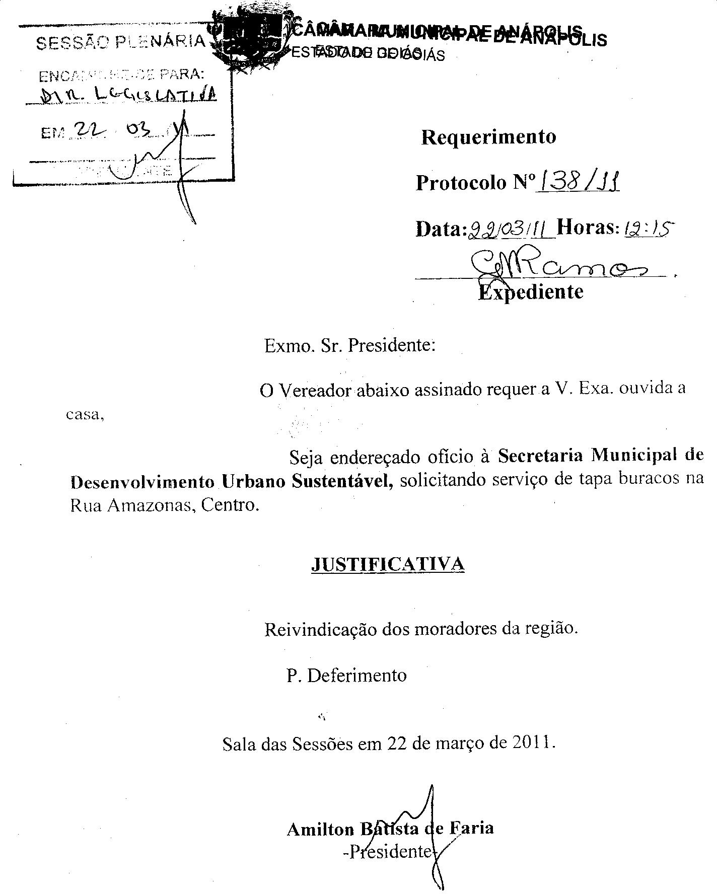 REQ 138/2011 - Requerimento