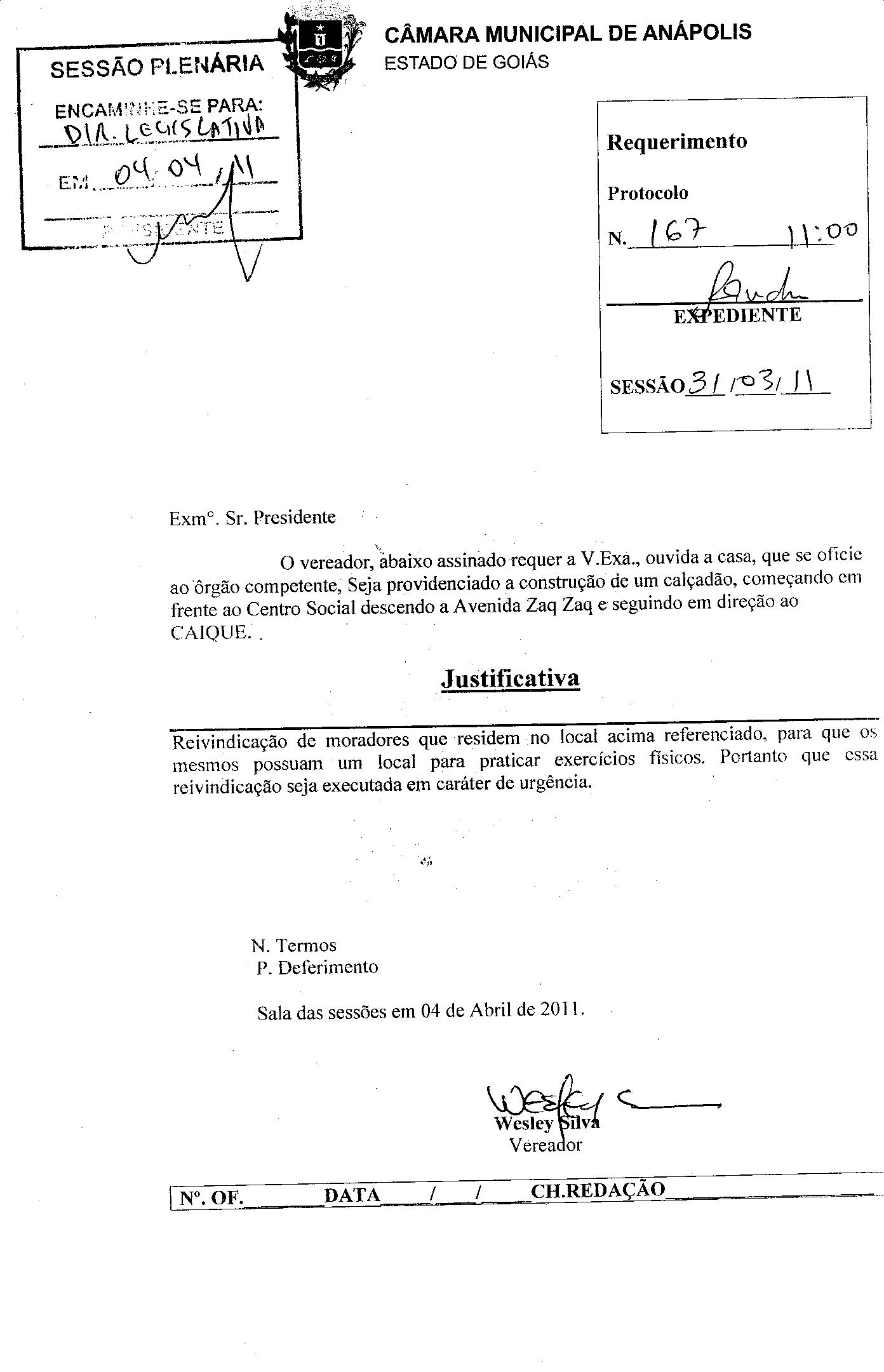 REQ 167/2011 - Requerimento