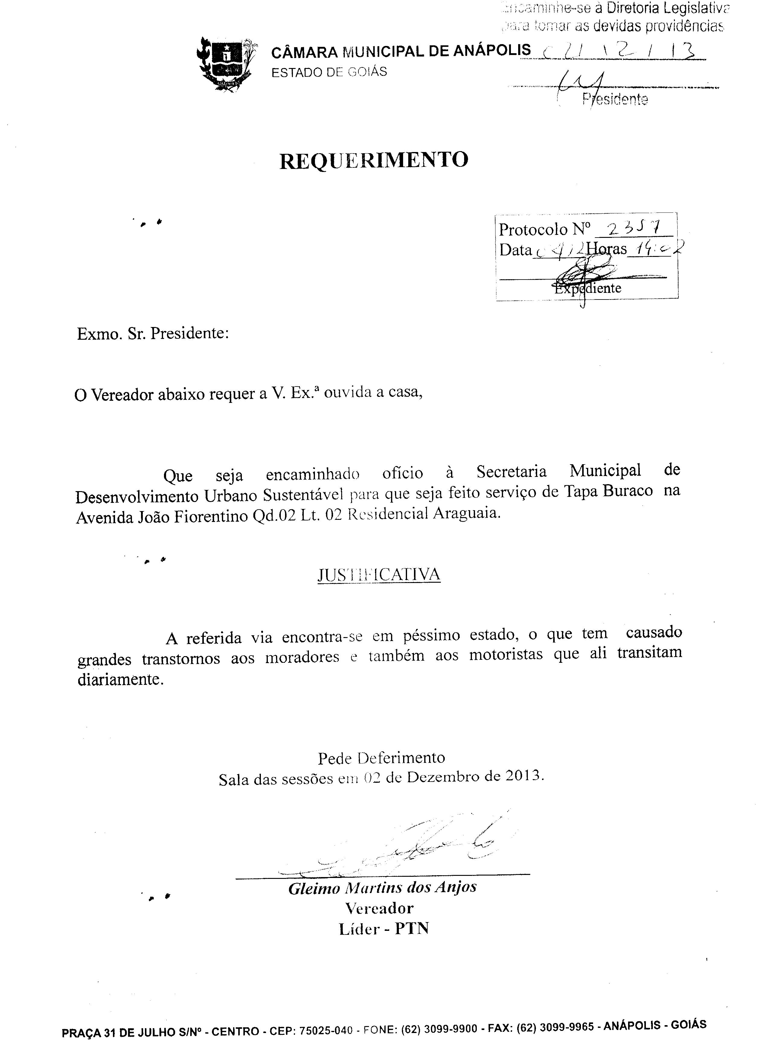 REQ 2396/2013 - Requerimento