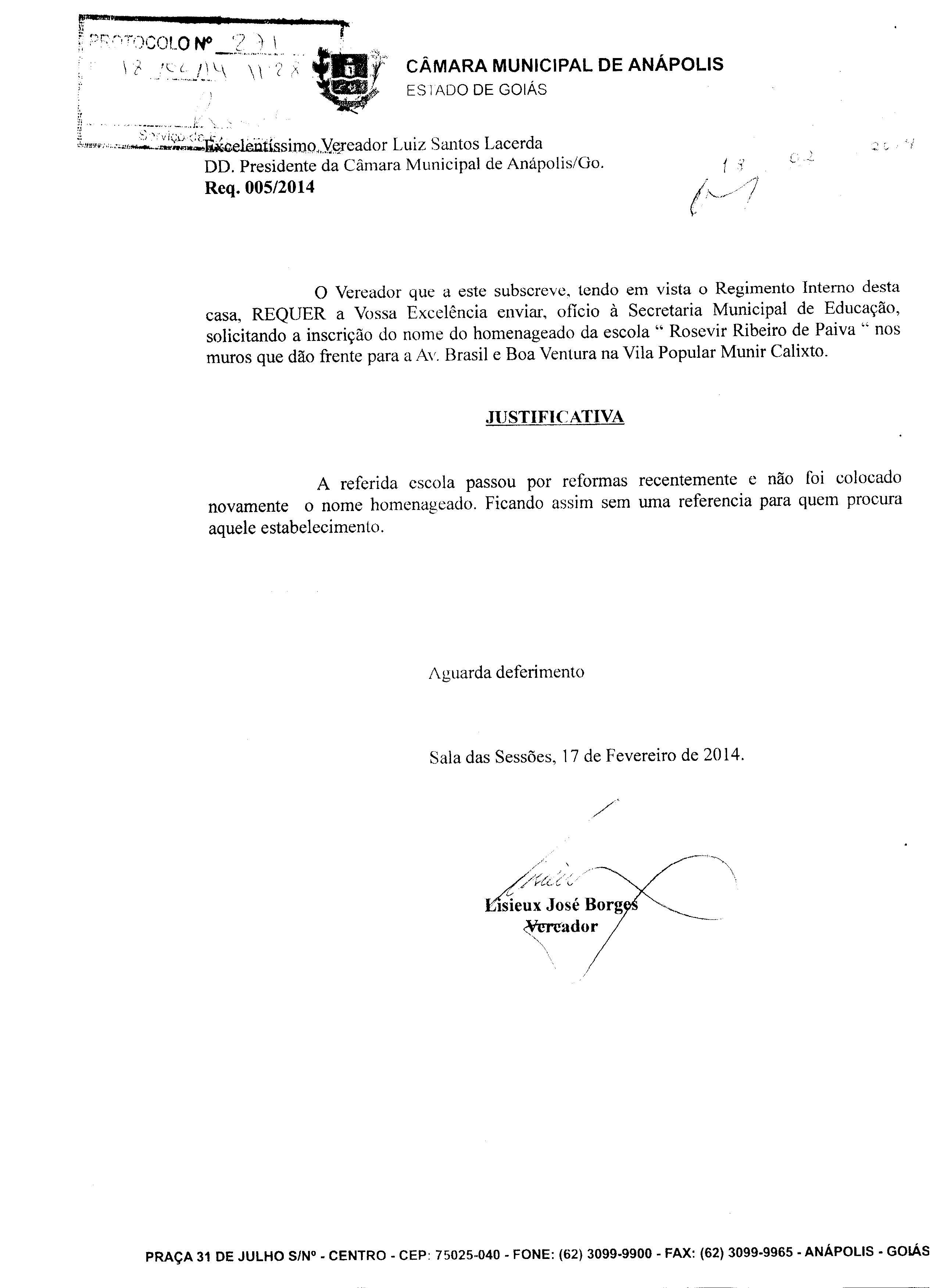 REQ 231/2014 - Requerimento