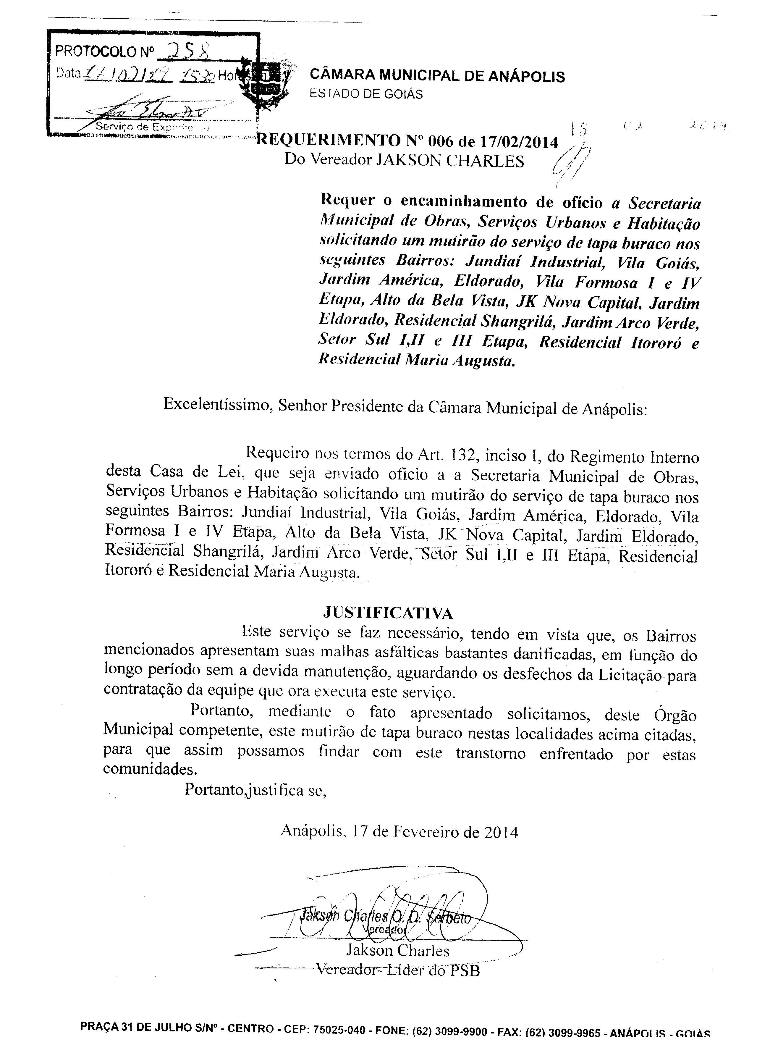 REQ 258/2014 - Requerimento
