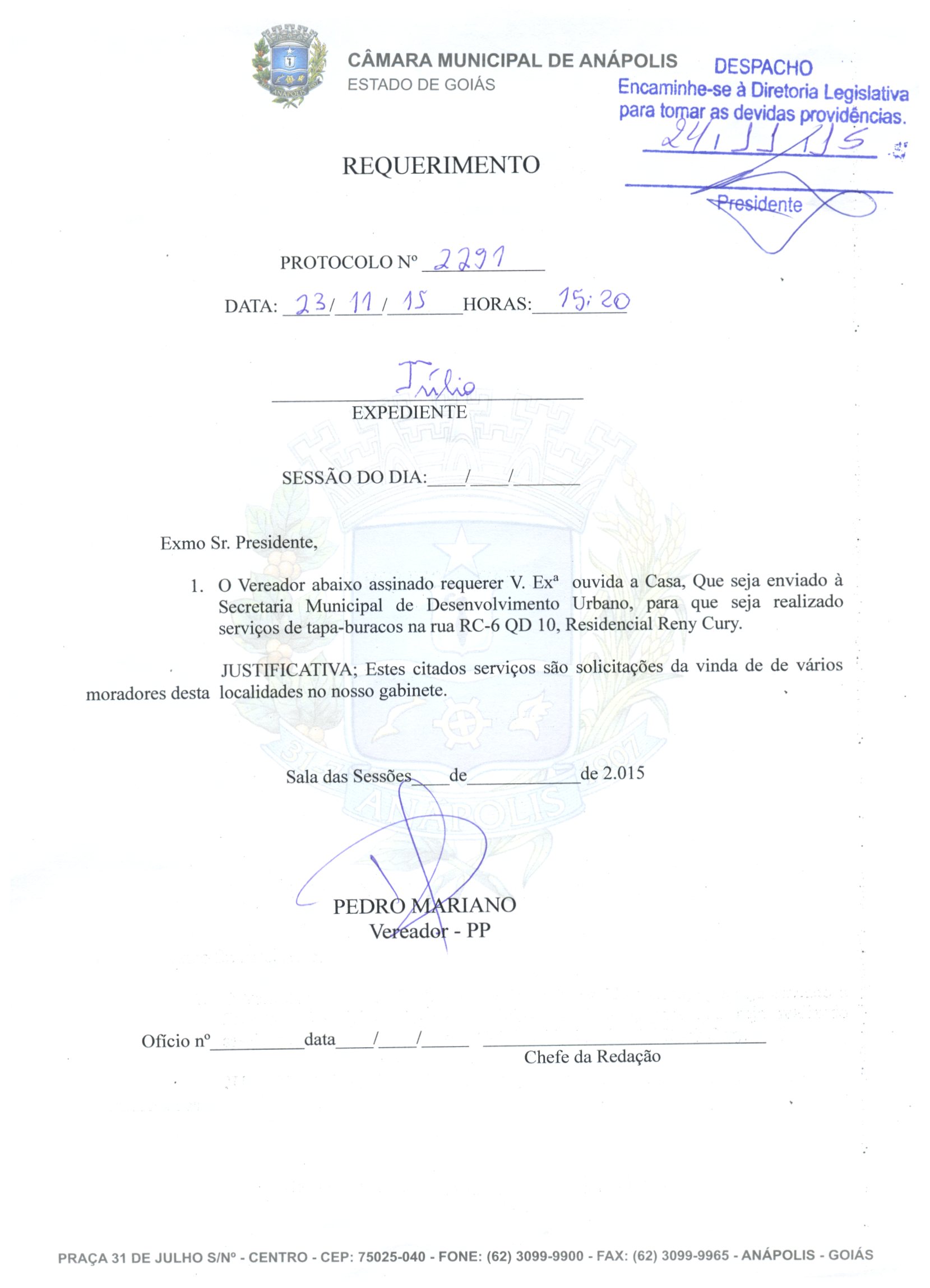 REQ 2291/2015 - Requerimento