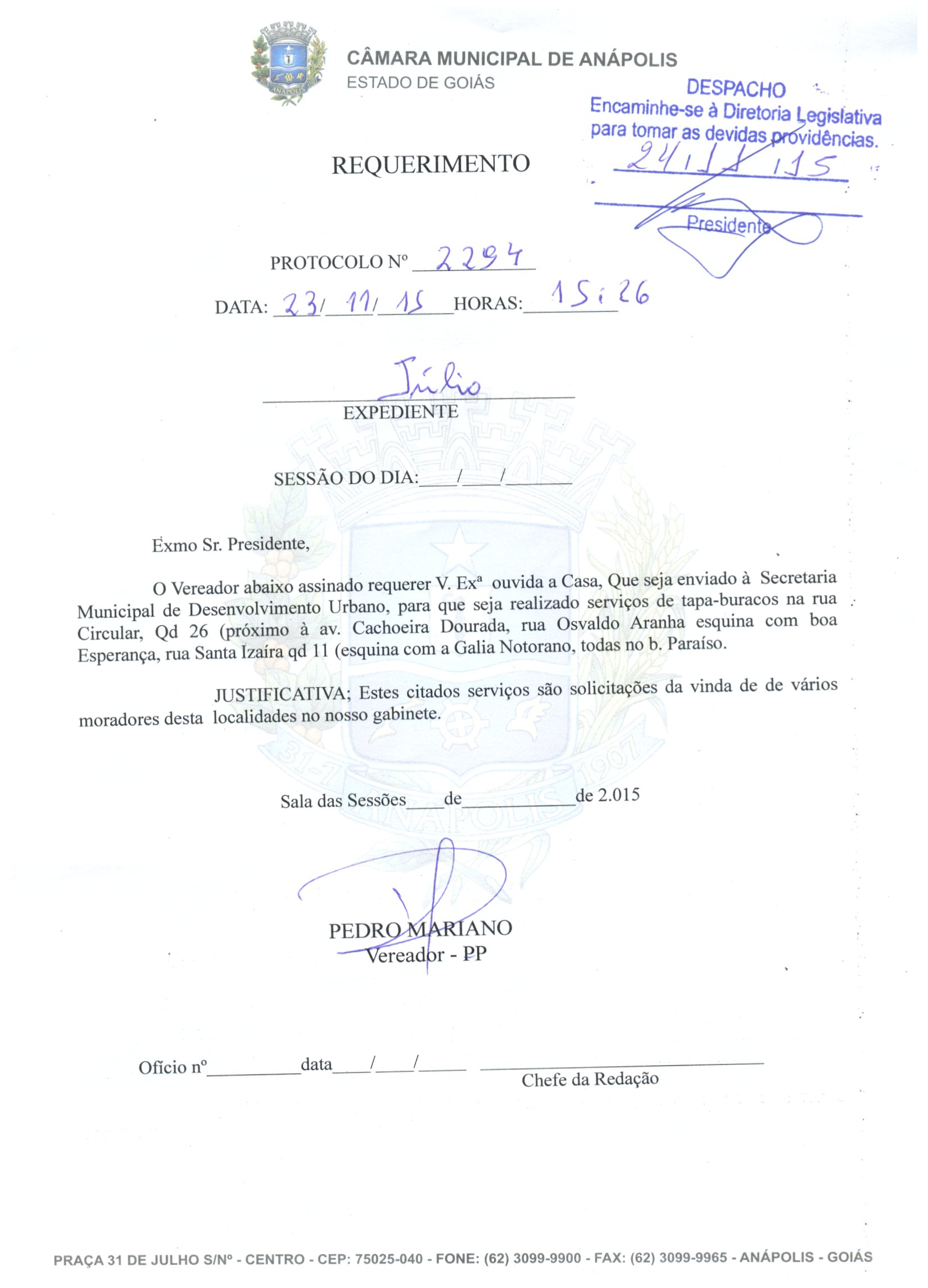 REQ 2294/2015 - Requerimento