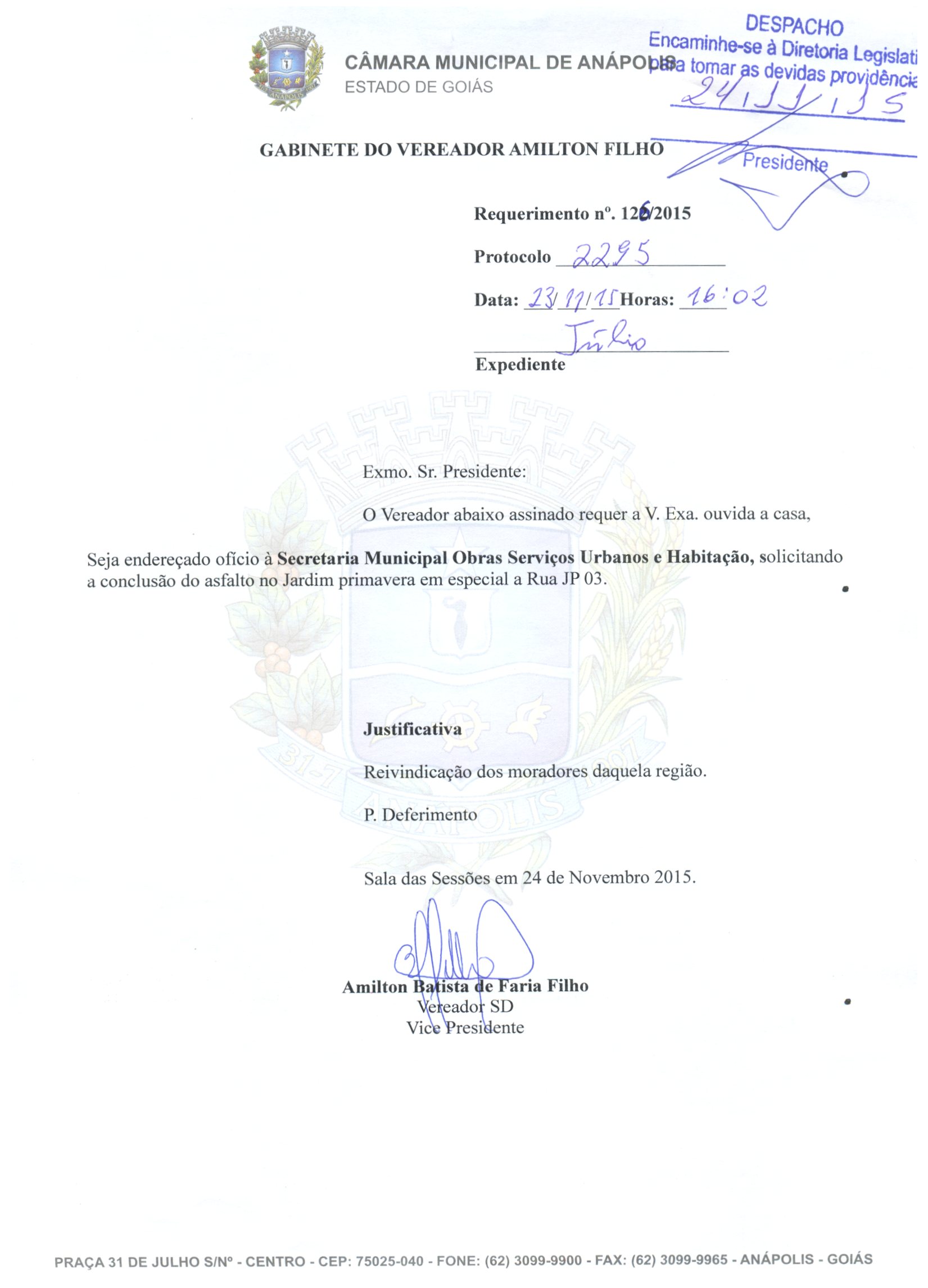 REQ 2295/2015 - Requerimento