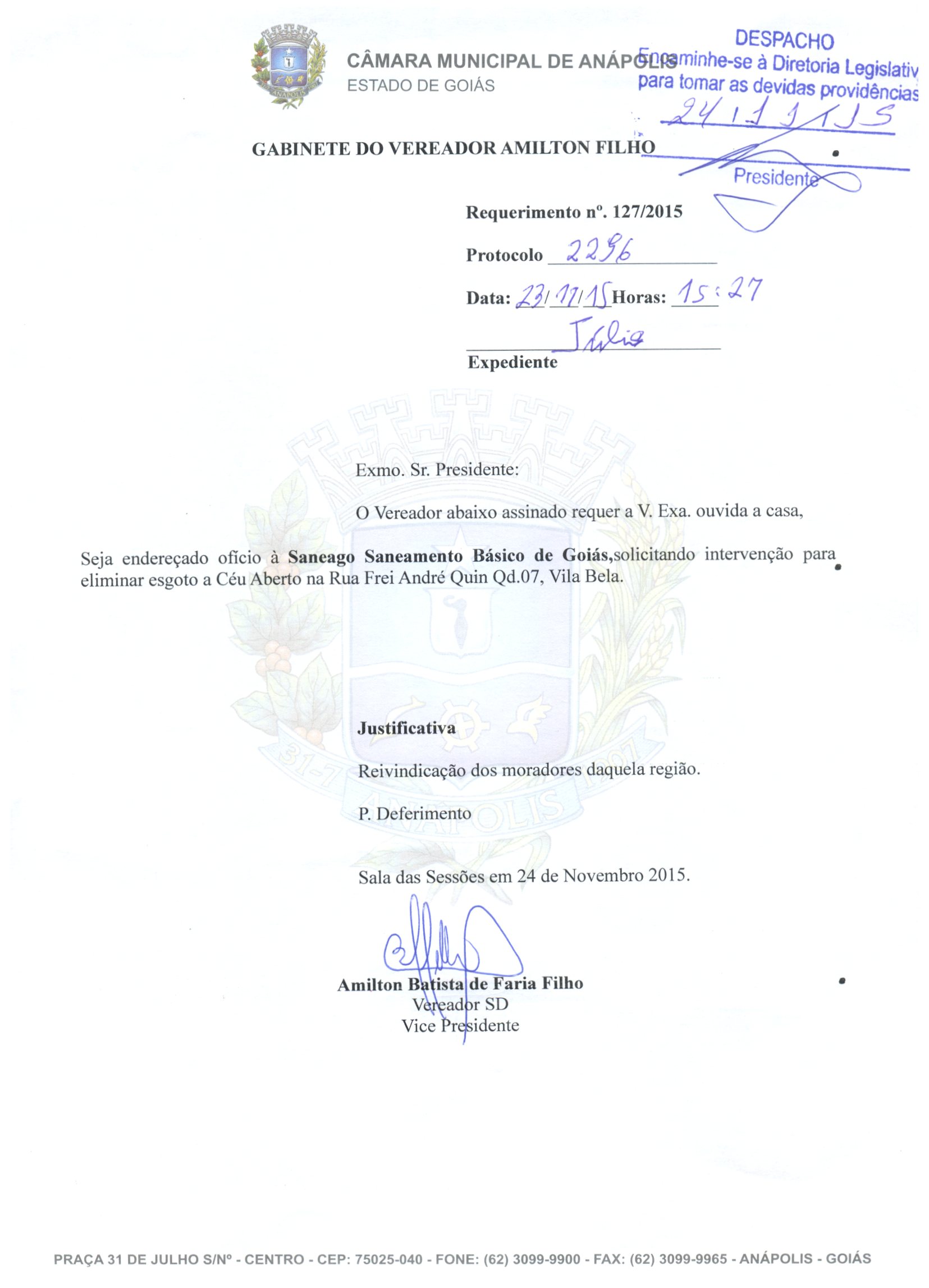REQ 2296/2015 - Requerimento
