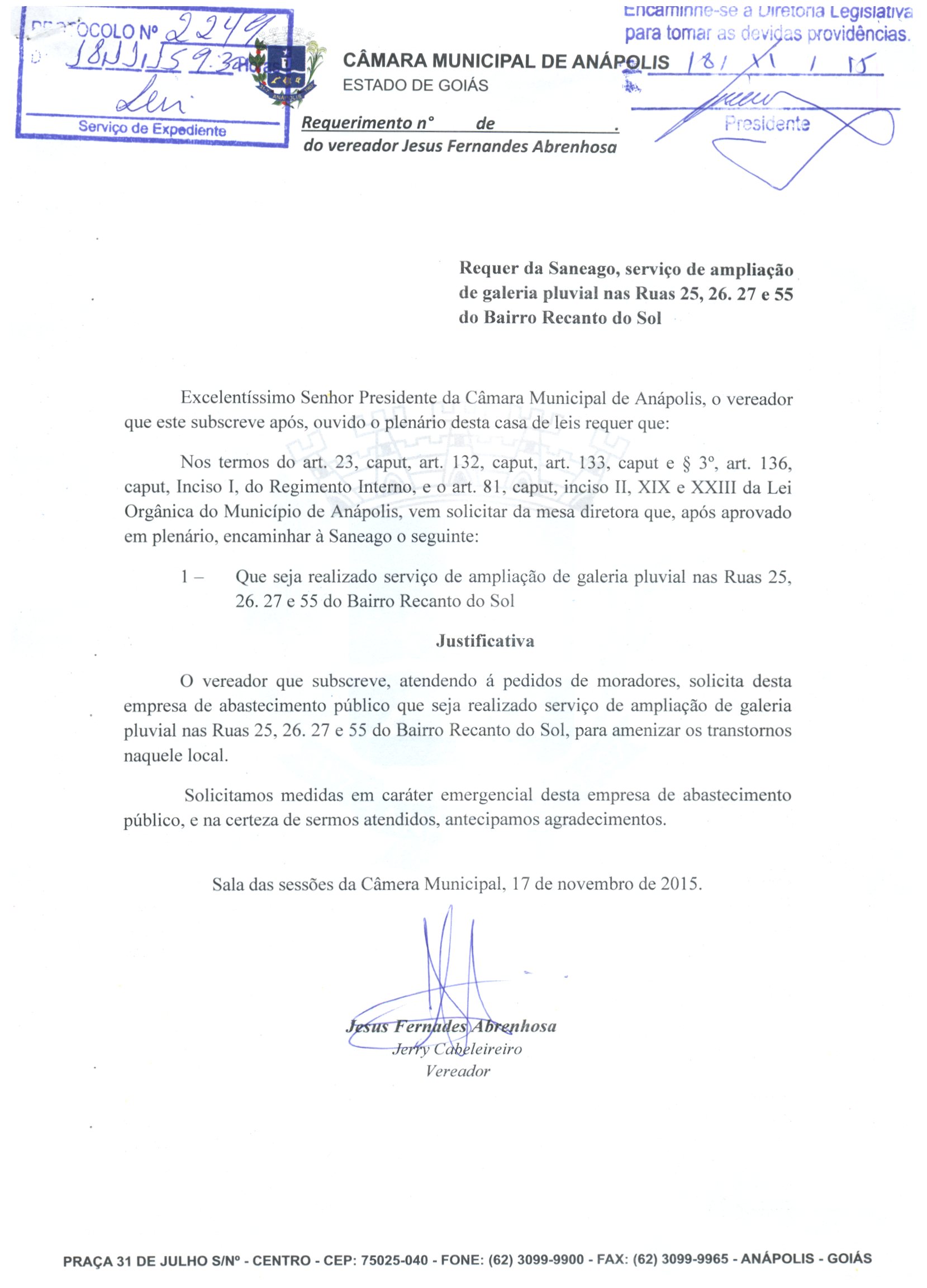REQ 2249/2015 - Requerimento