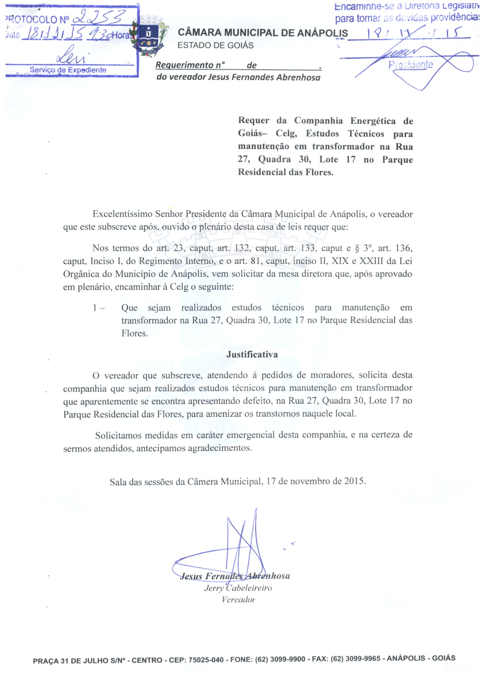 REQ 2253/2015 - Requerimento