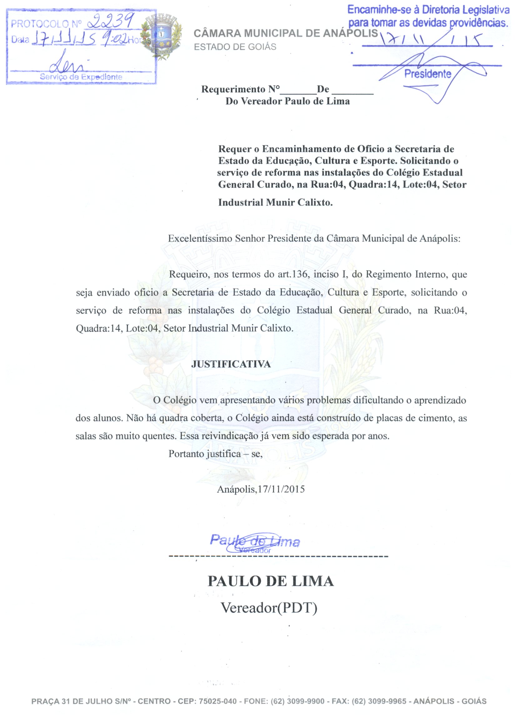REQ 2229/2015 - Requerimento