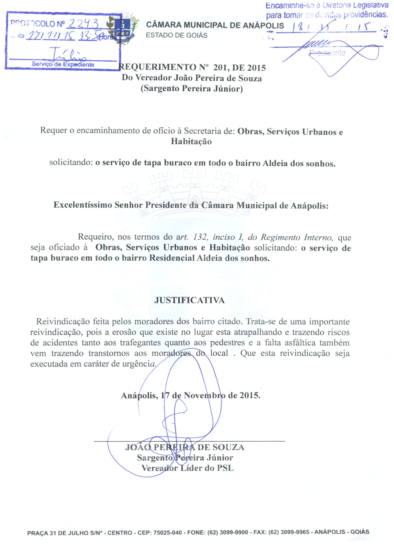 REQ 2243/2015 - Requerimento