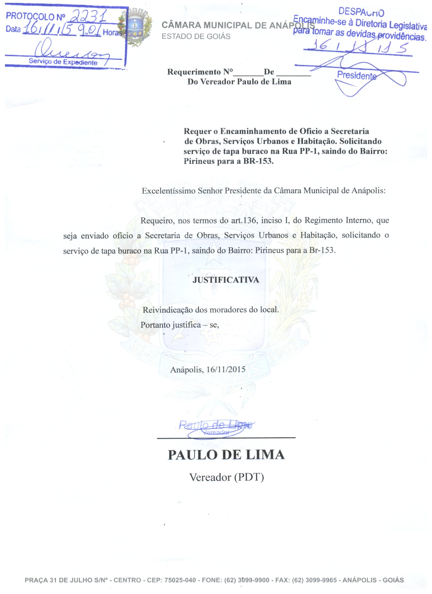 REQ 2231/2015 - Requerimento