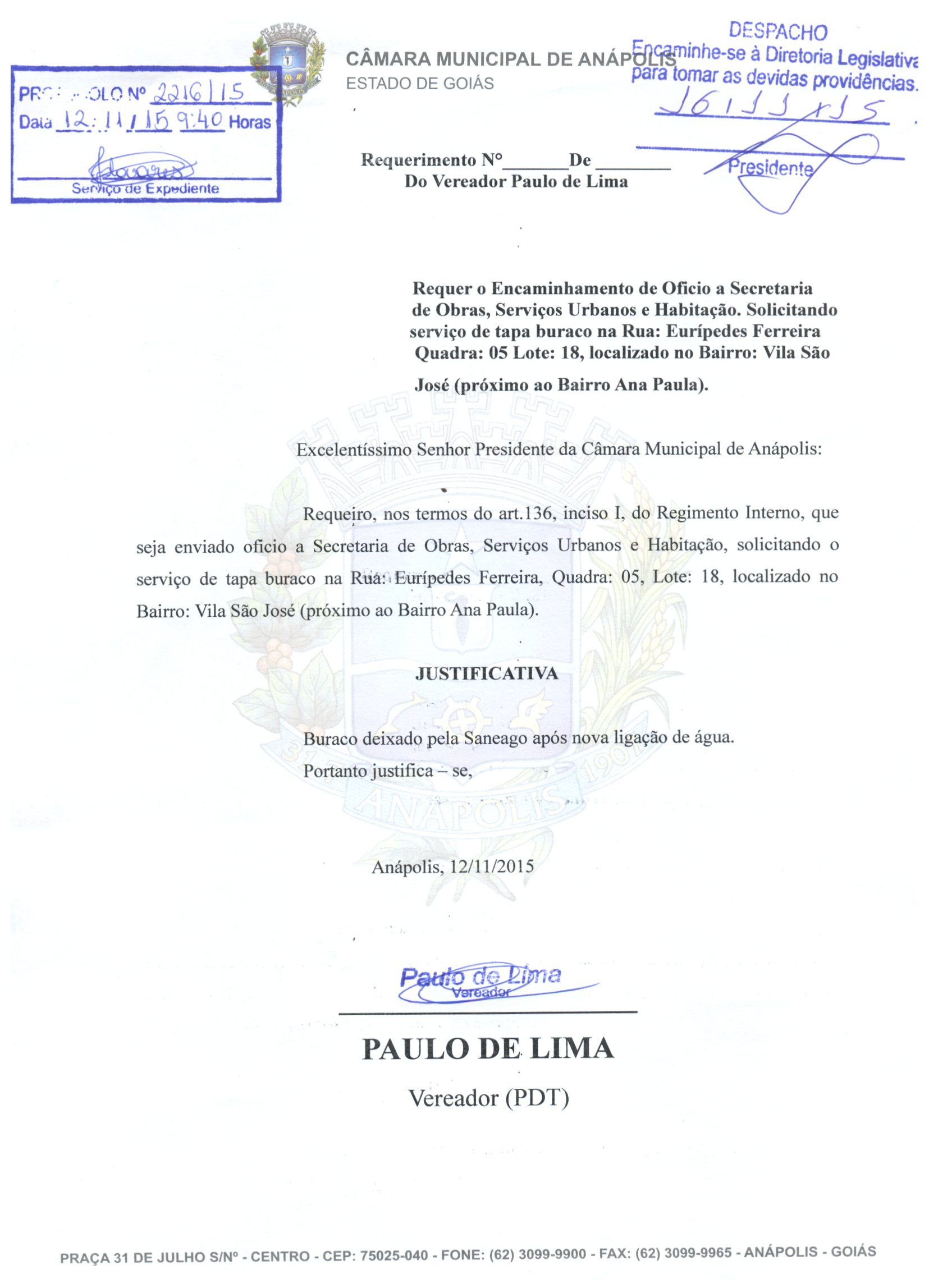 REQ 2216/2015 - Requerimento