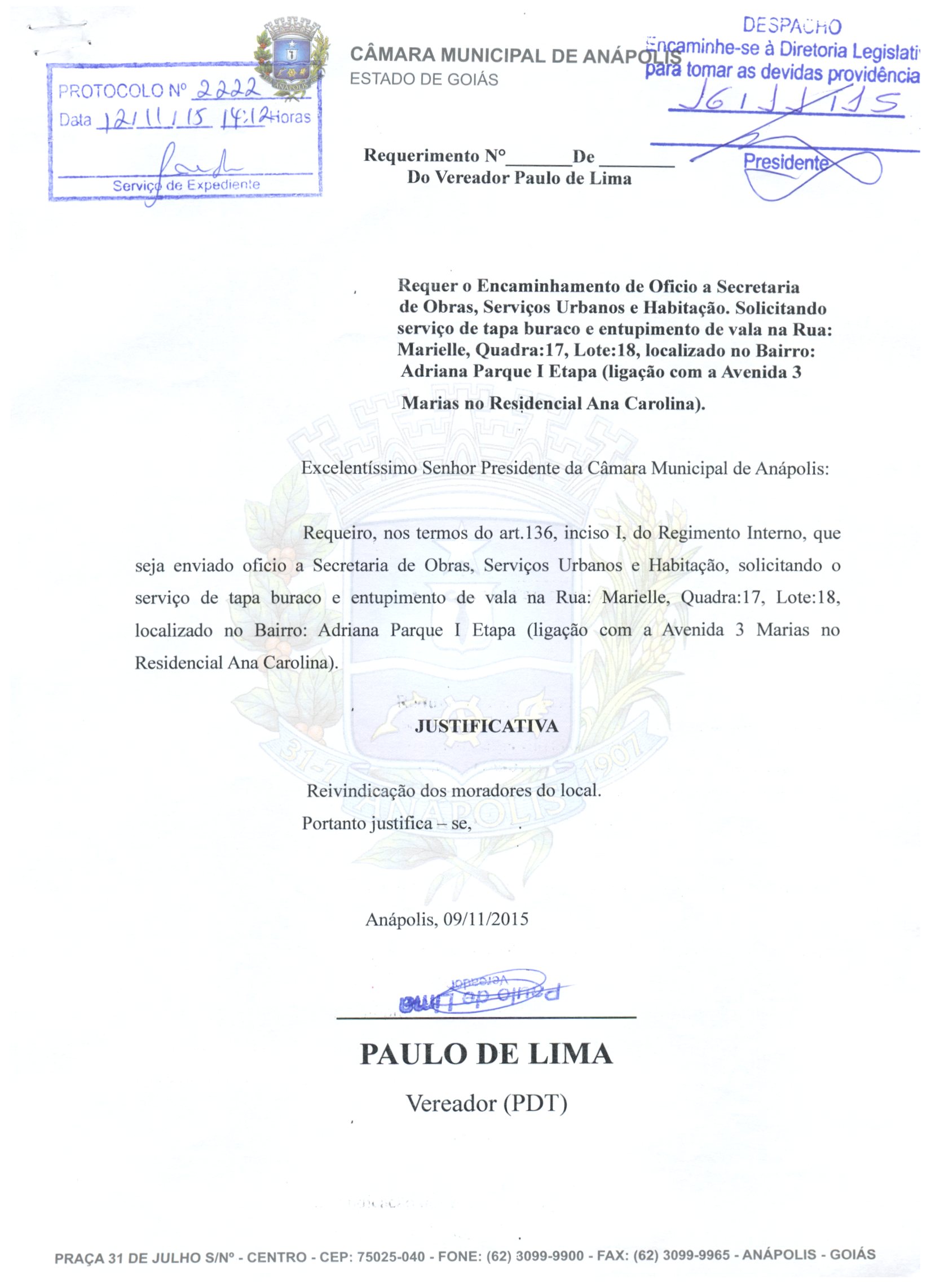 REQ 2222/2015 - Requerimento