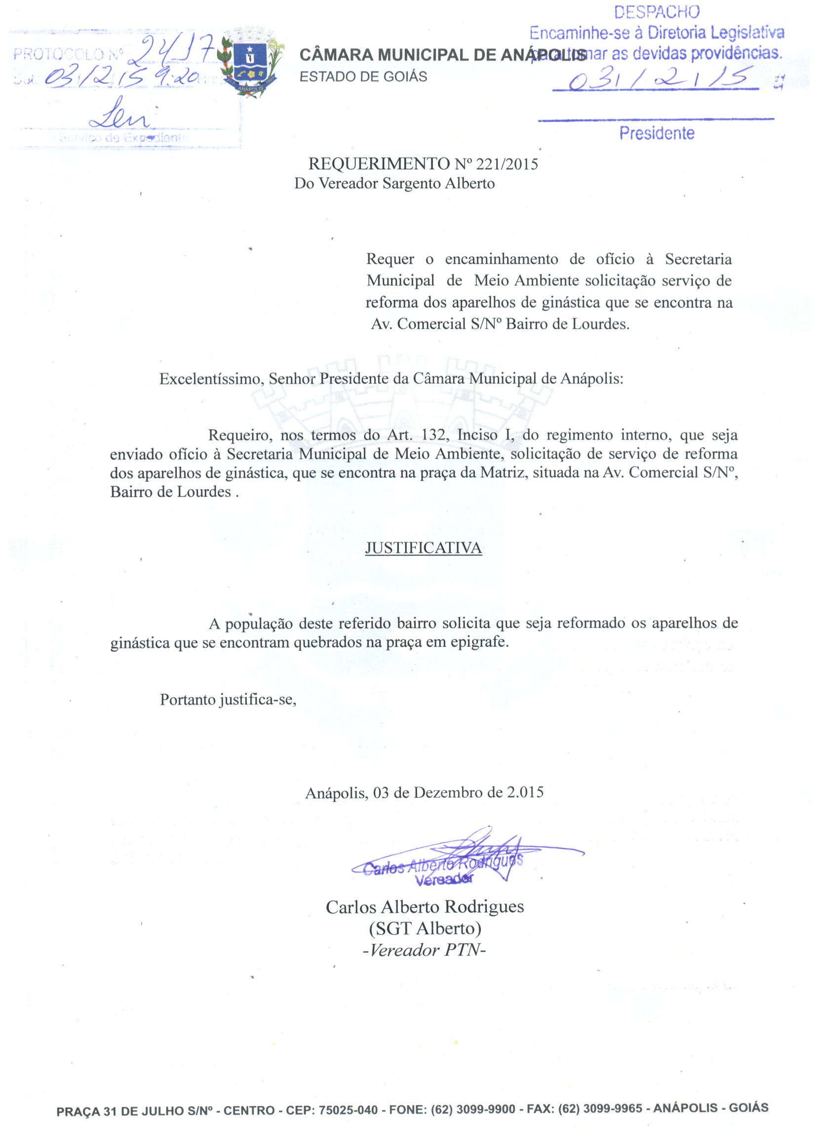 Ementa: À SECRETARIA MUNICIPAL DE MEIO AMBIENTE, SOLICITANDO O SERVIÇO DE REFORMA DOS APARELHOS DE GINÁSTICA QUE SE ENCONTRA AV. COMERCIAL S/N, NO BAIRRO DE LOURDES.