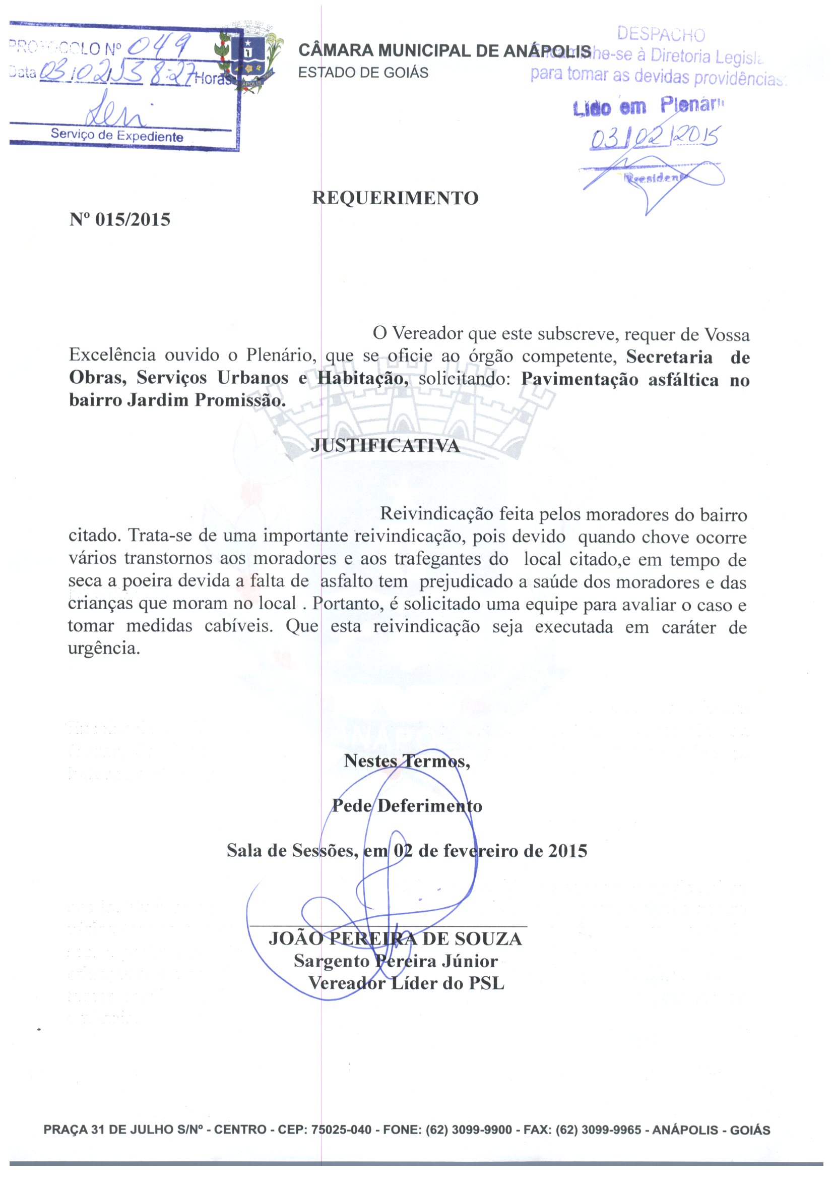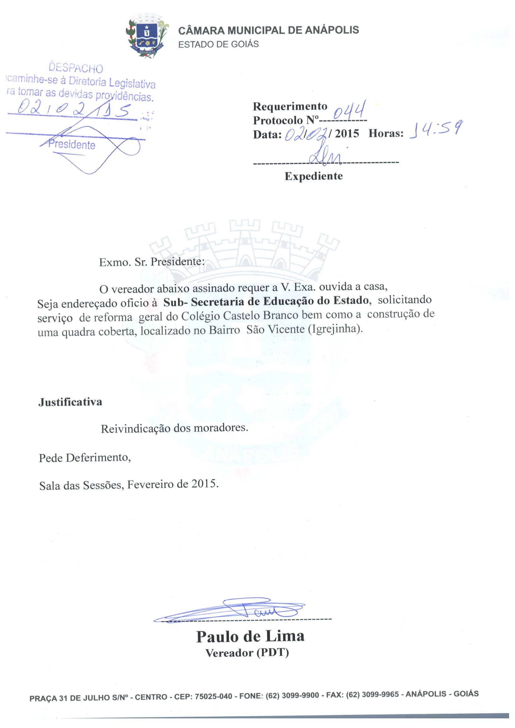 REQ 44/2015 - Requerimento