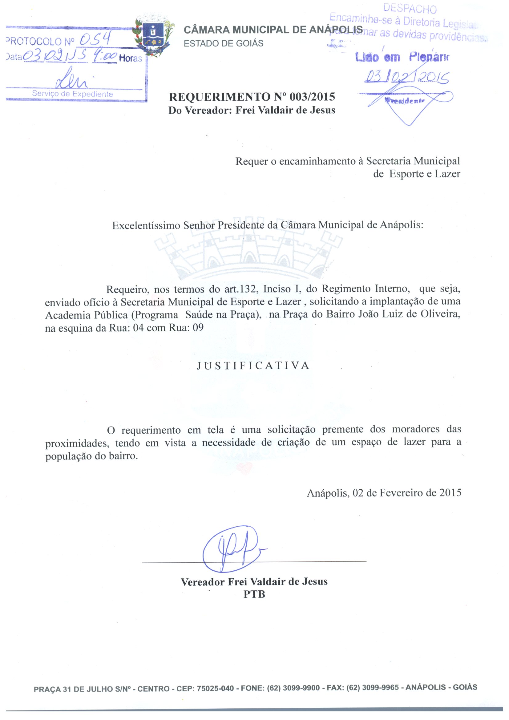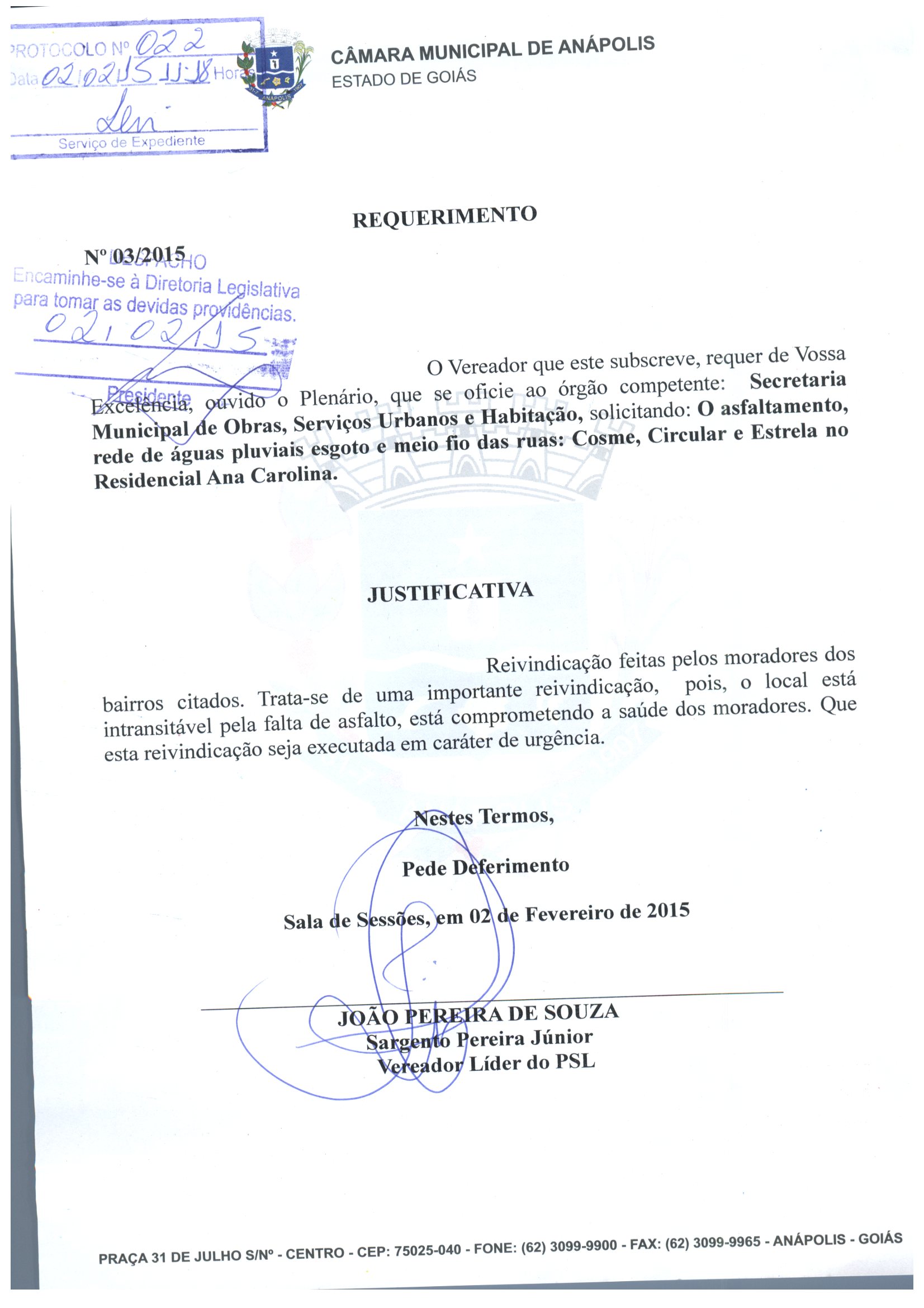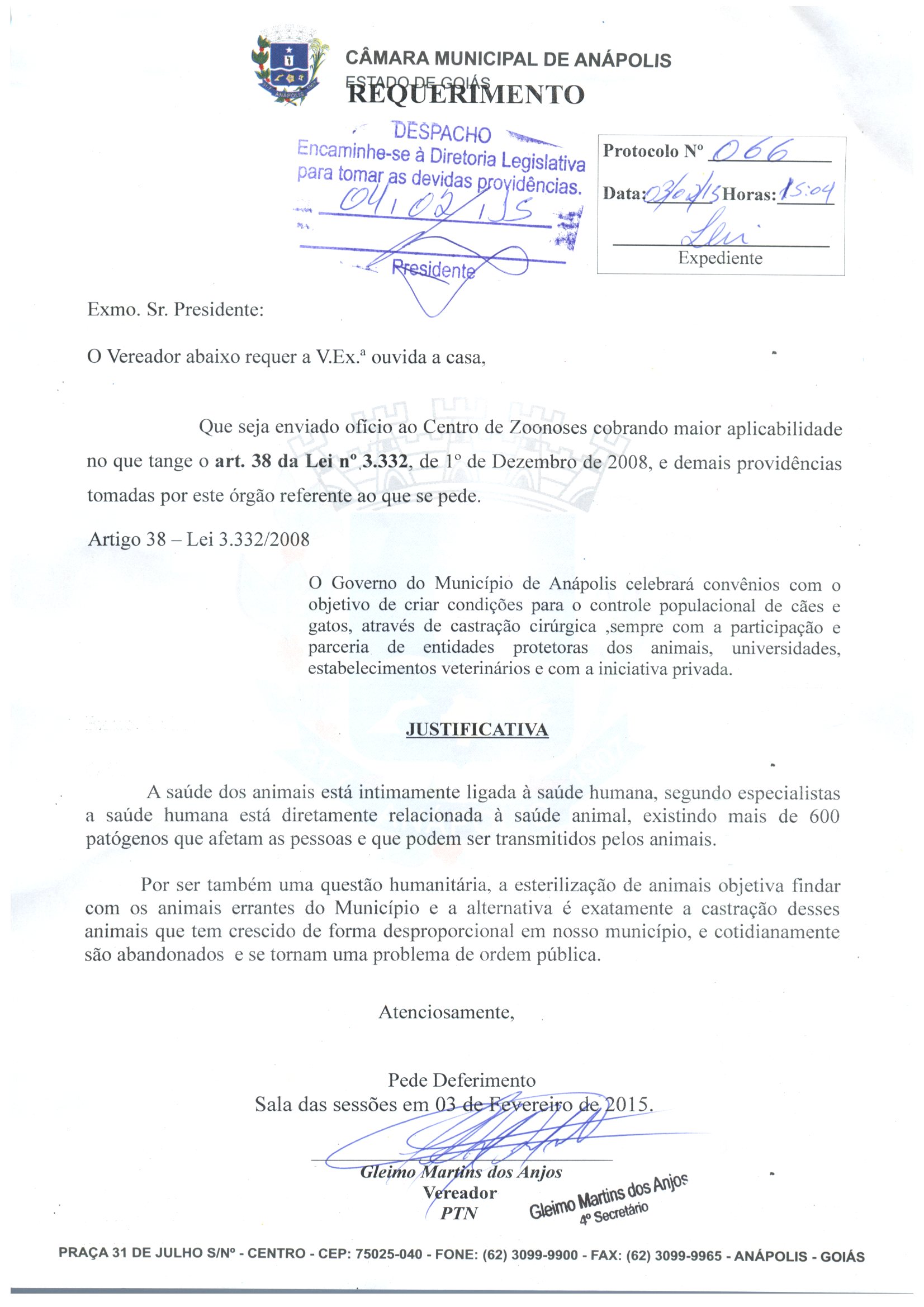 REQ 38/2015 - Requerimento