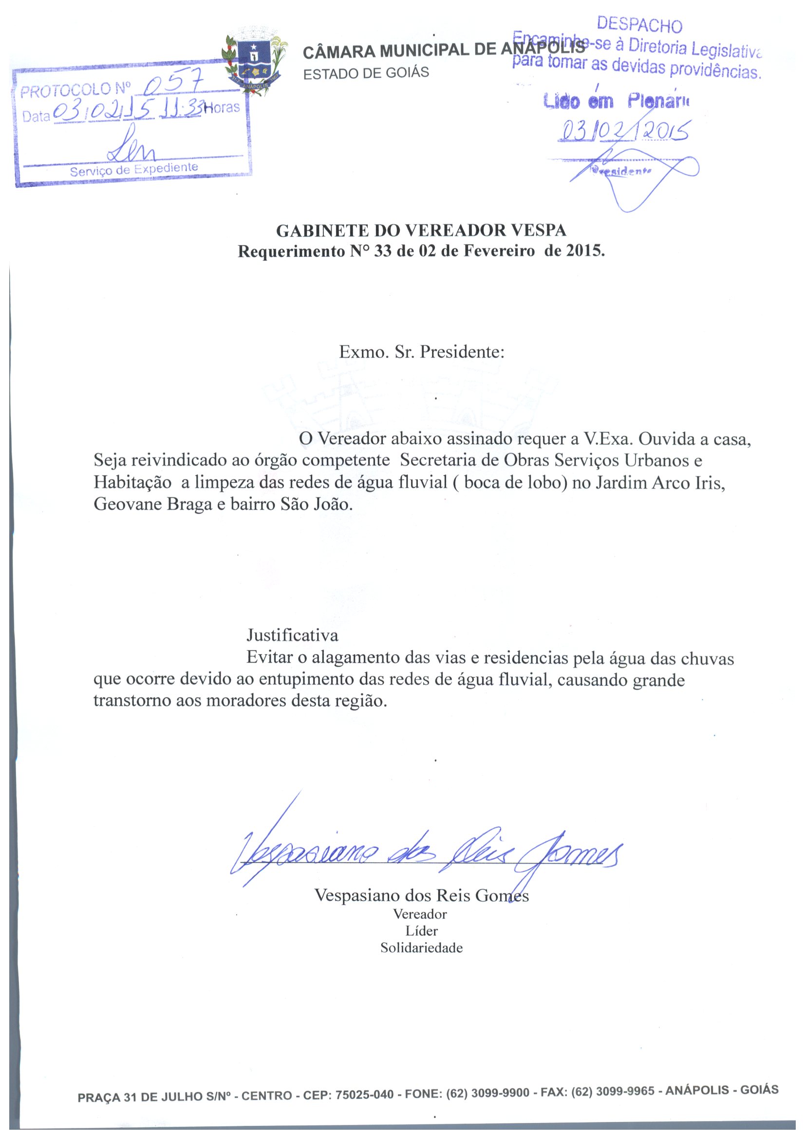REQ 33/2015 - Requerimento
