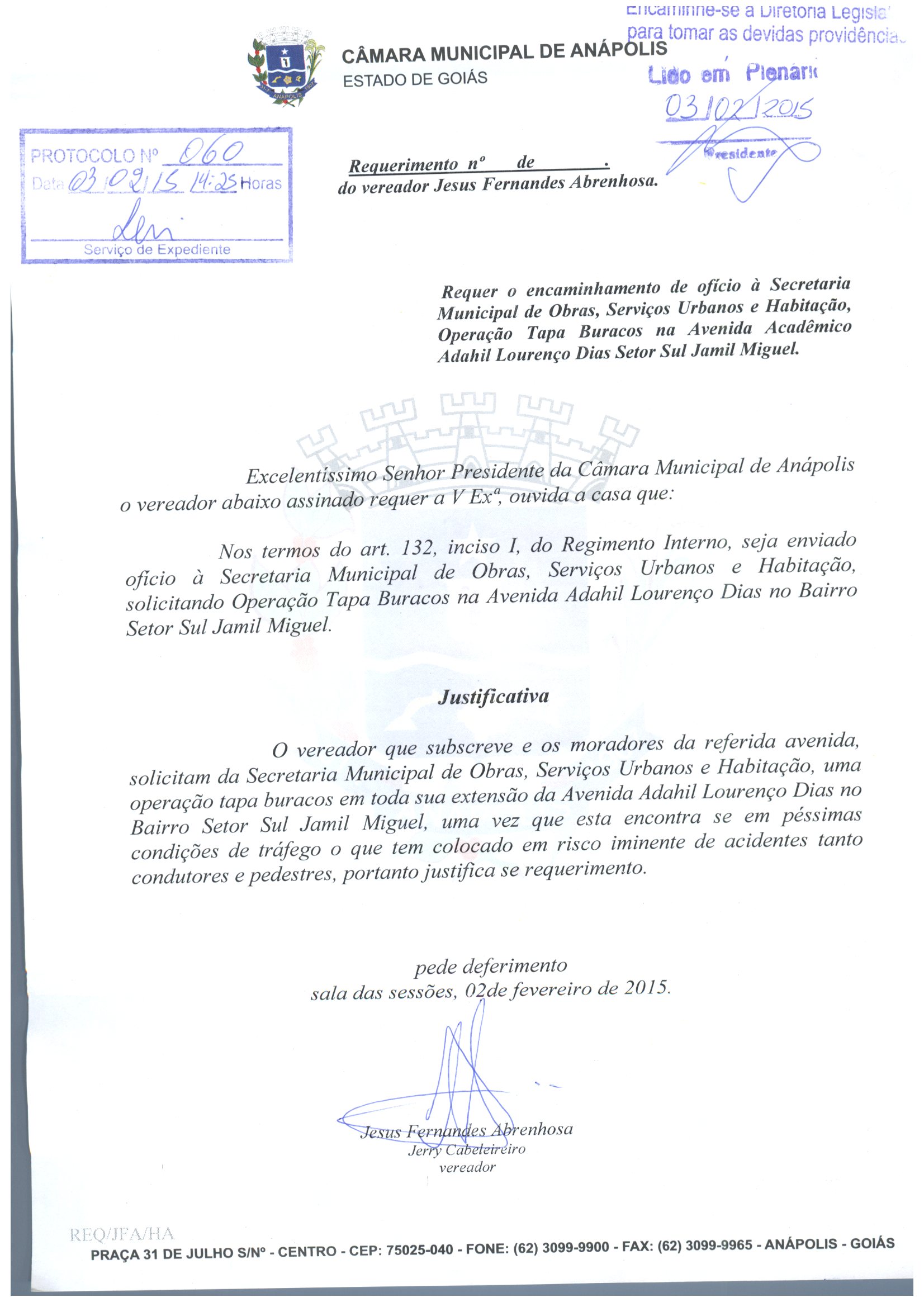 REQ 60/2015 - Requerimento