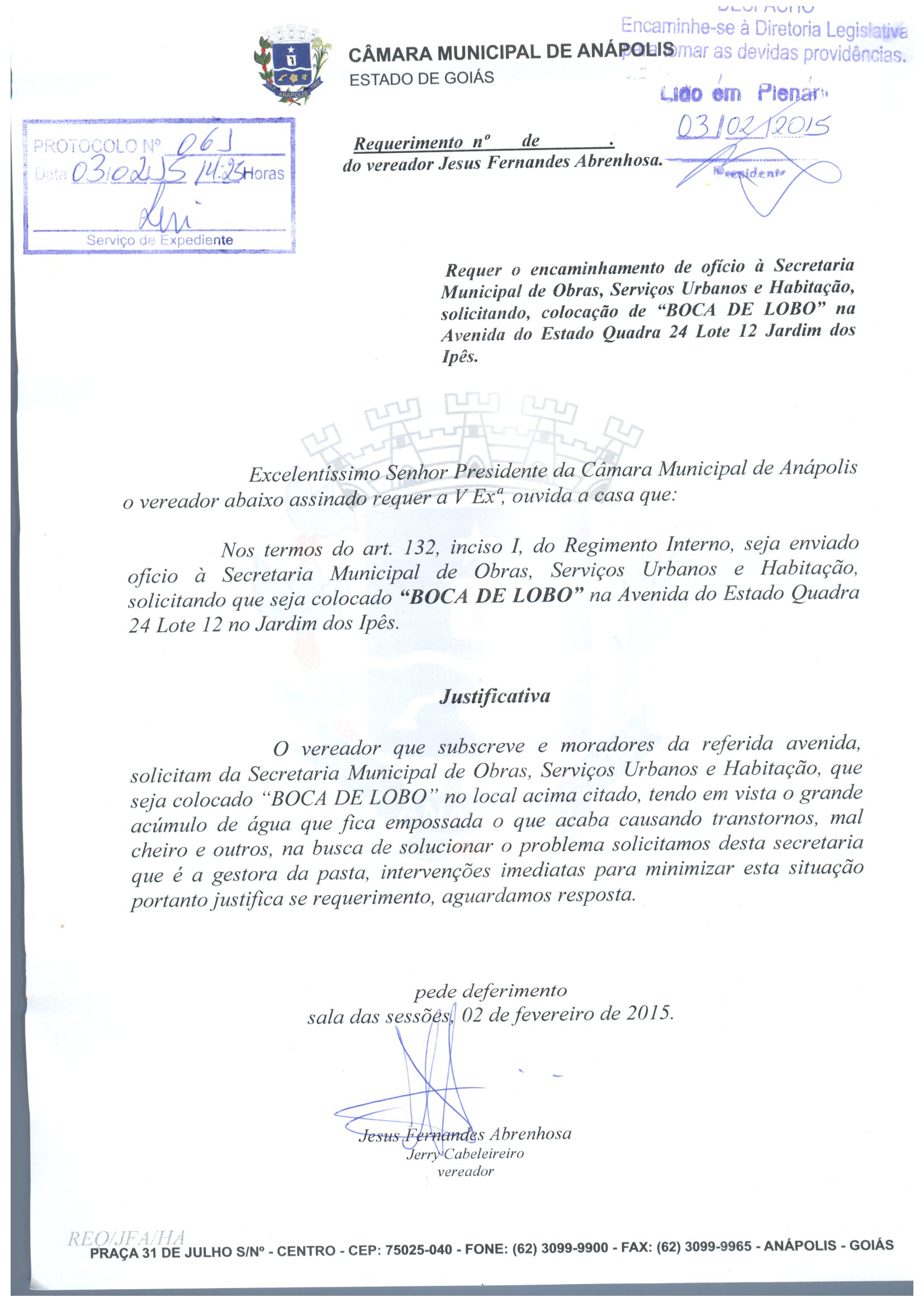 REQ 61/2015 - Requerimento