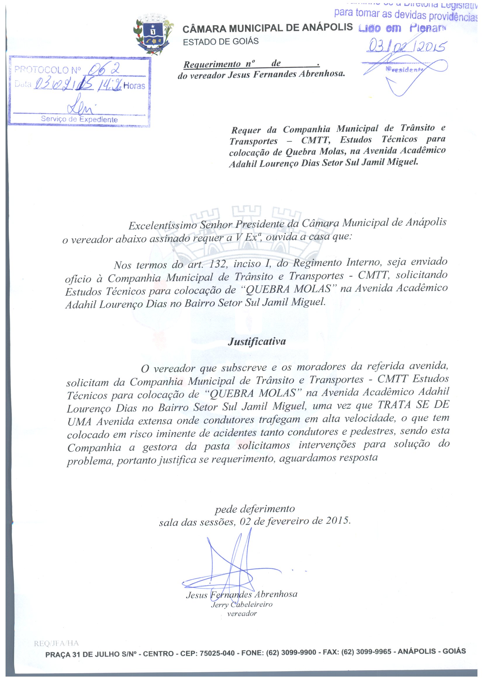 REQ 62/2015 - Requerimento