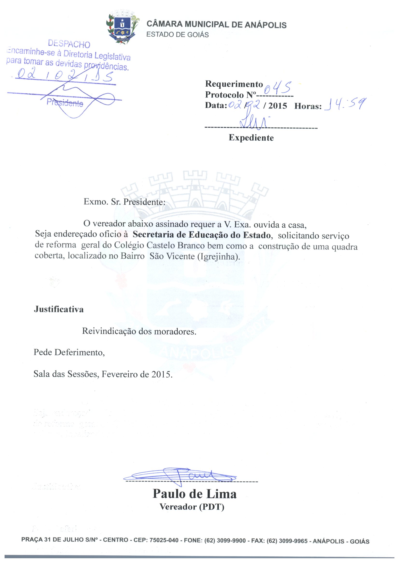 REQ 45/2015 - Requerimento