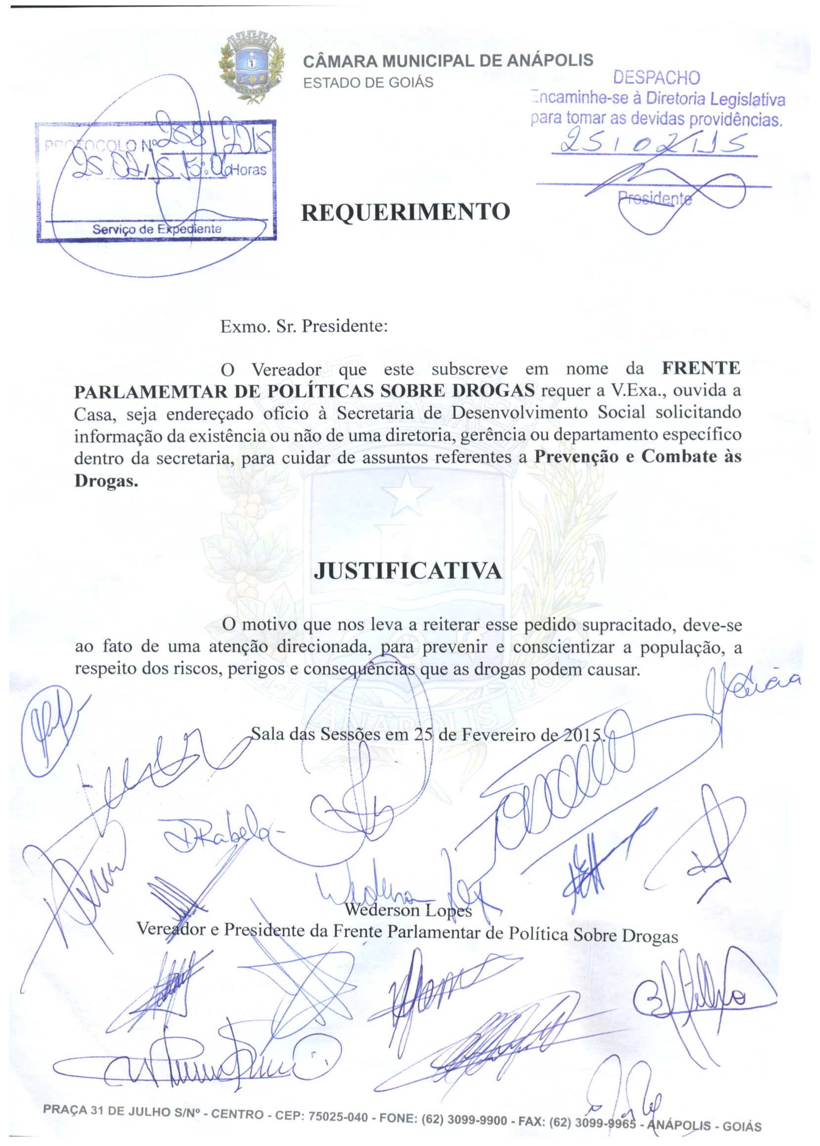 Ementa: À SECRETARIA DE DESENVOLVIMENTO SOCIAL, SOLICITANDO INFORMAÇÃO DA EXISTÊNCIA OU NÃO DE UMA DIRETORIA, GERÊNCIA OU DEPARTAMENTO ESPECÍFICO DENTRO DA SECRETARIA, PARA CUIDAR DE ASSUNTOS REFERENTES À PREVENÇÃO E COMBATE ÀS DROGAS.