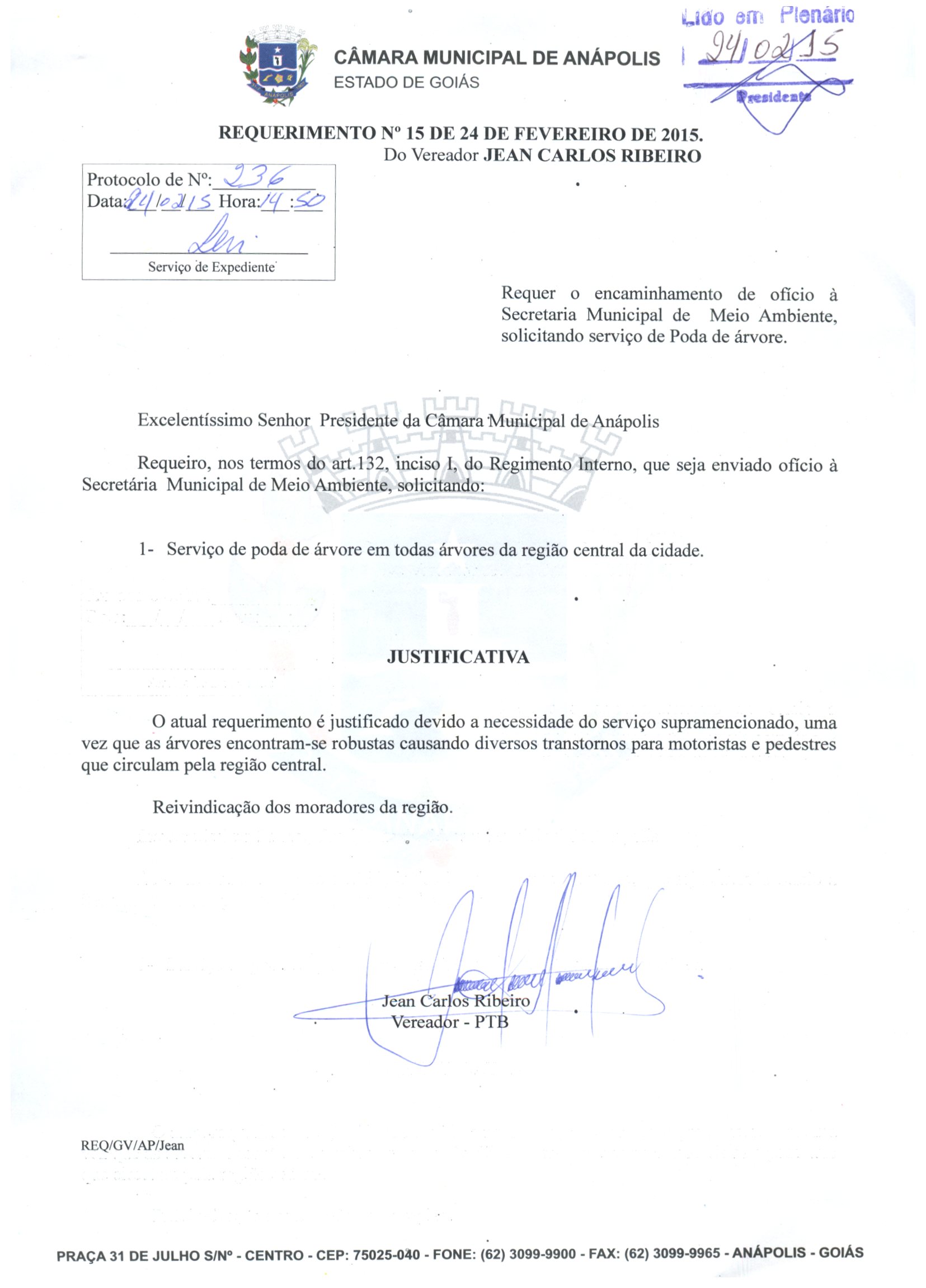 Ementa: REQUEIRO, NOS TERMOS DO ART.132, INCISO I, DO REGIMENTO INTERNO, QUE SEJA ENVIADO OFÍCIO À SECRETARIA MUNICIPAL DE MEIO AMBIENTE, SOLICITANDO: 1- SERVIÇO DE PODA DE ÁRVORE EM TODAS ÁRVORES DA REGIÃO CENTRAL DA CIDADE.