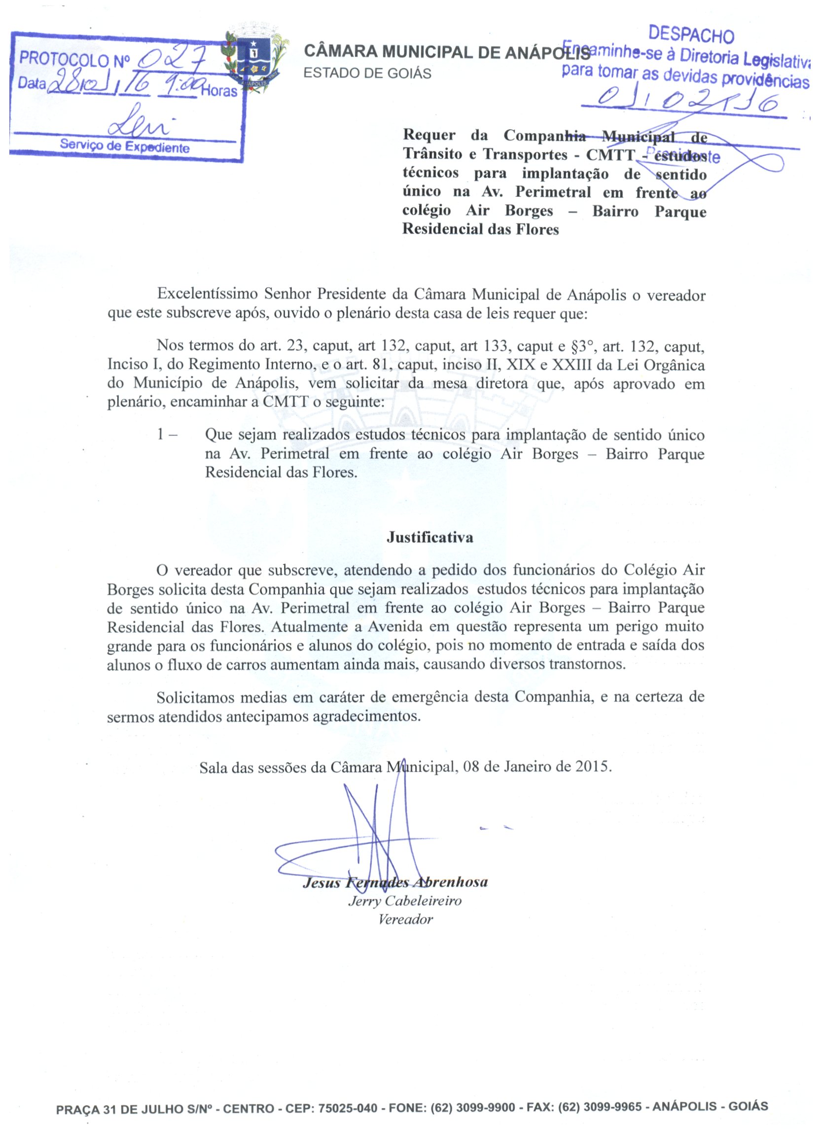 ![]() REQUER O ENCAMINHAMENTO DE OFÍCIO À SECRETARIA MUNICIPAL DE TRANSITO E TRANSPORTE( CMTT ), SOLICITAÇ