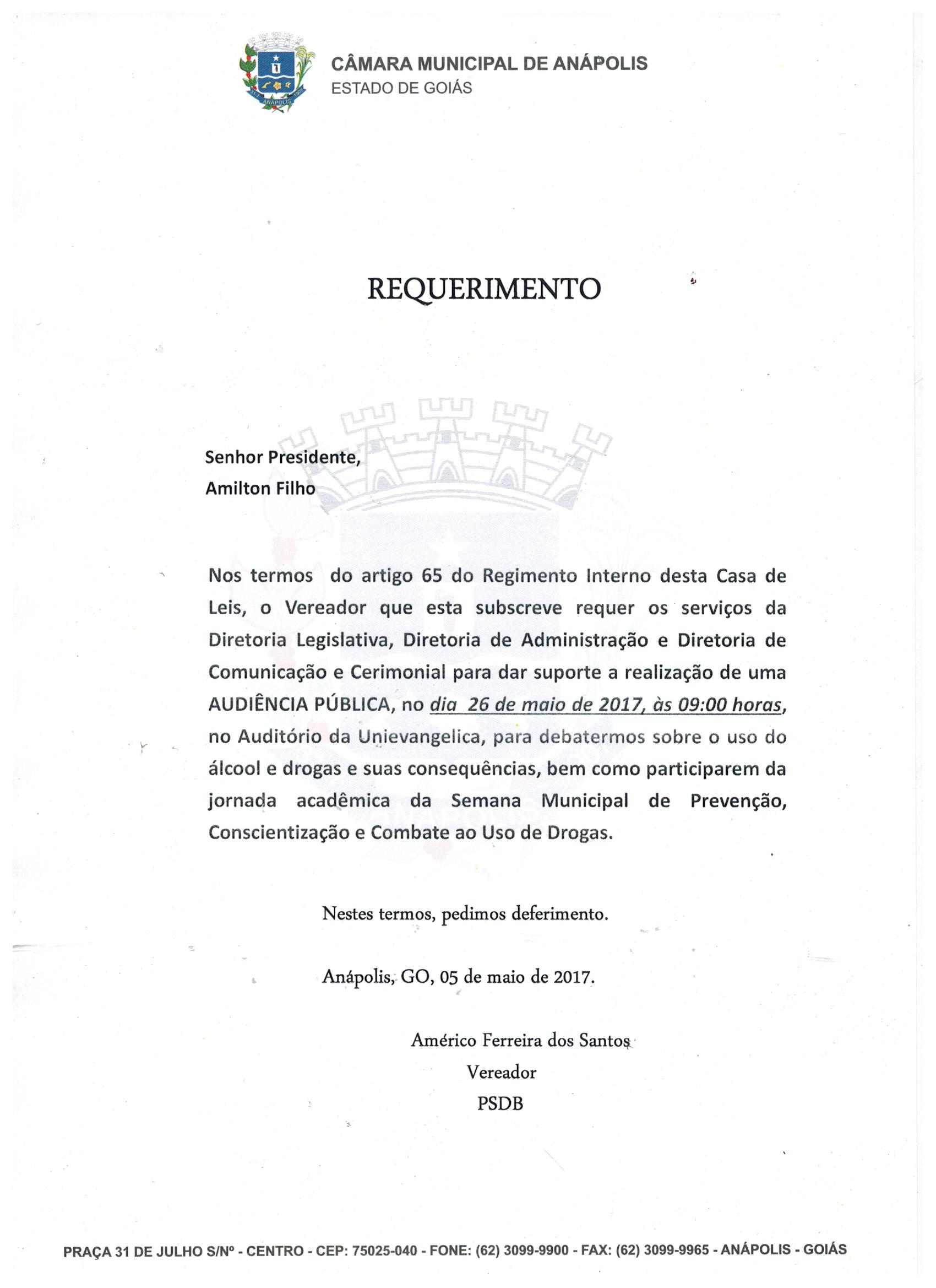 Ementa: REQUERIMENTO DE AUDIÊNCIA PUBLICA SOBRE AO COMBATE DE ÁLCOOL E DROGAS.