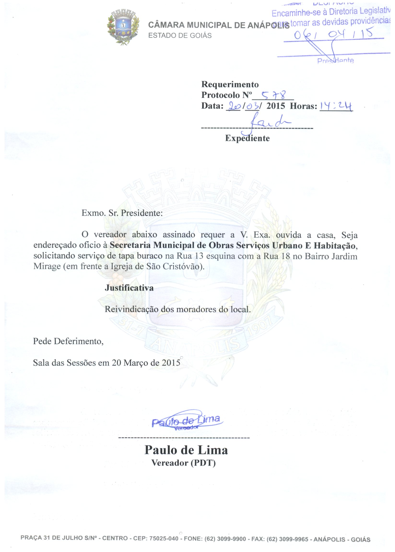 REQ 578/2015 - Requerimento