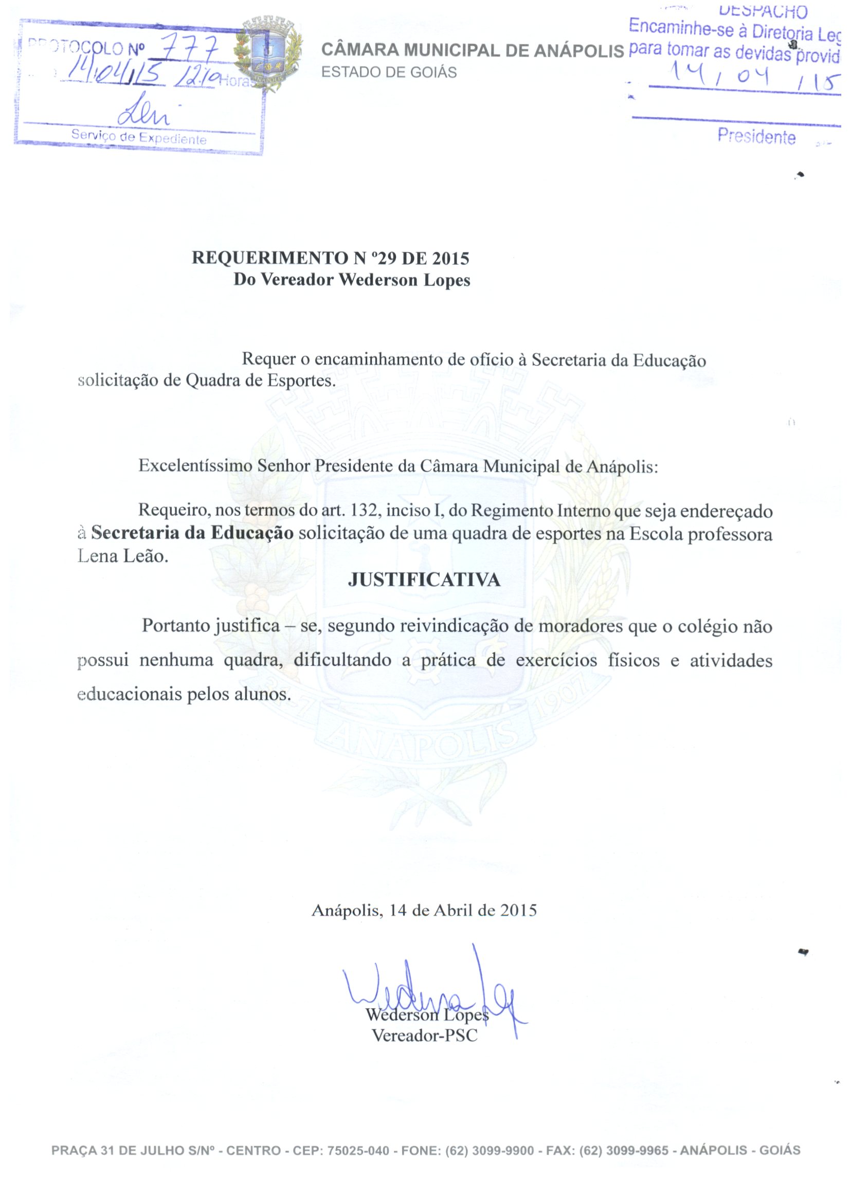 REQ 777/2015 - Requerimento