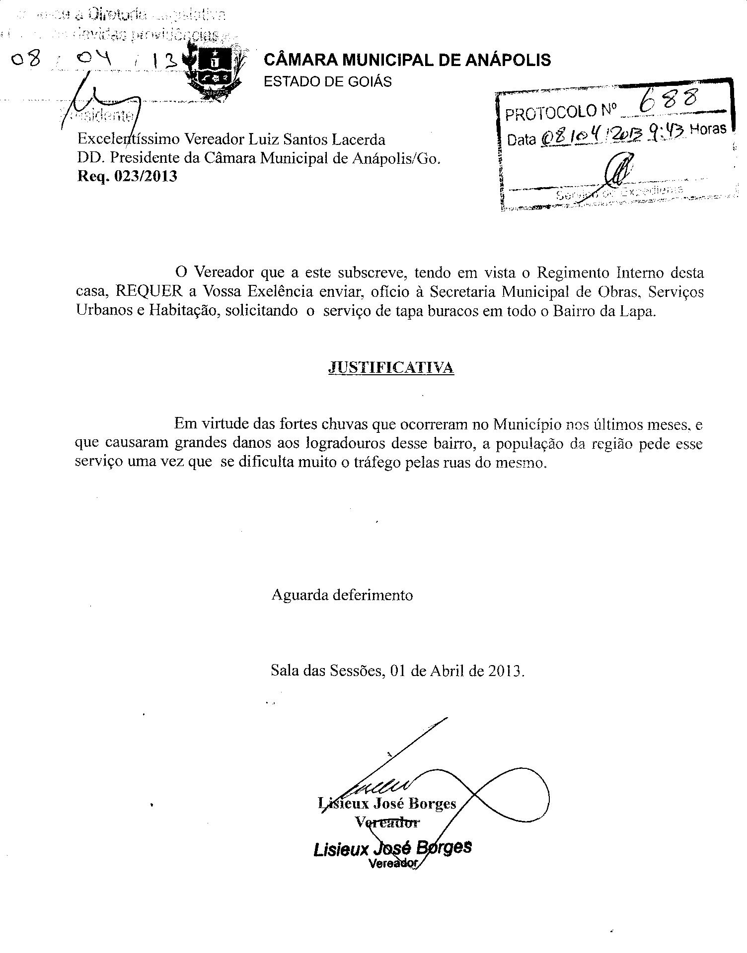 REQ 688/2013 - Requerimento