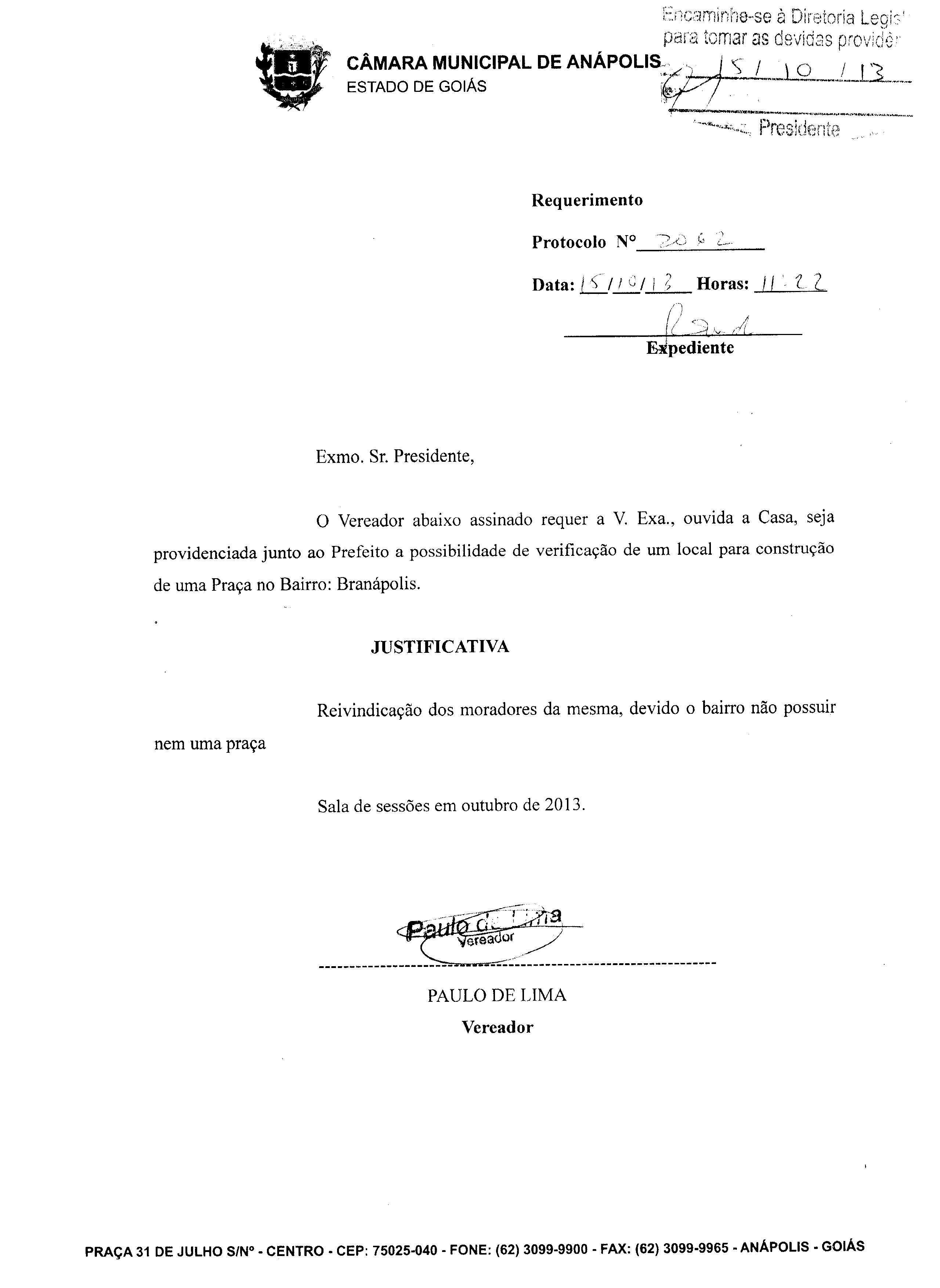 REQ 2062/2013 - Requerimento