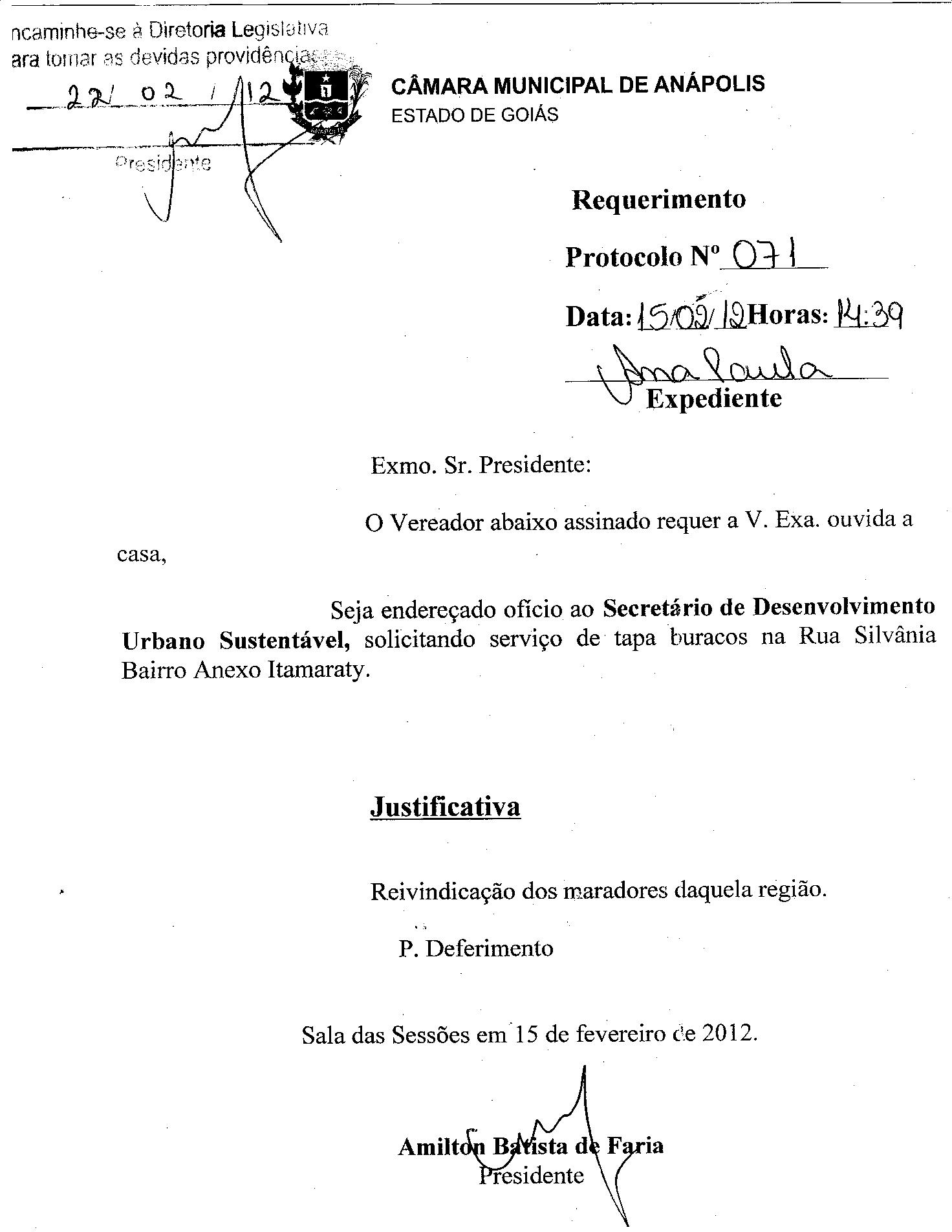 REQ 71/2012 - Requerimento